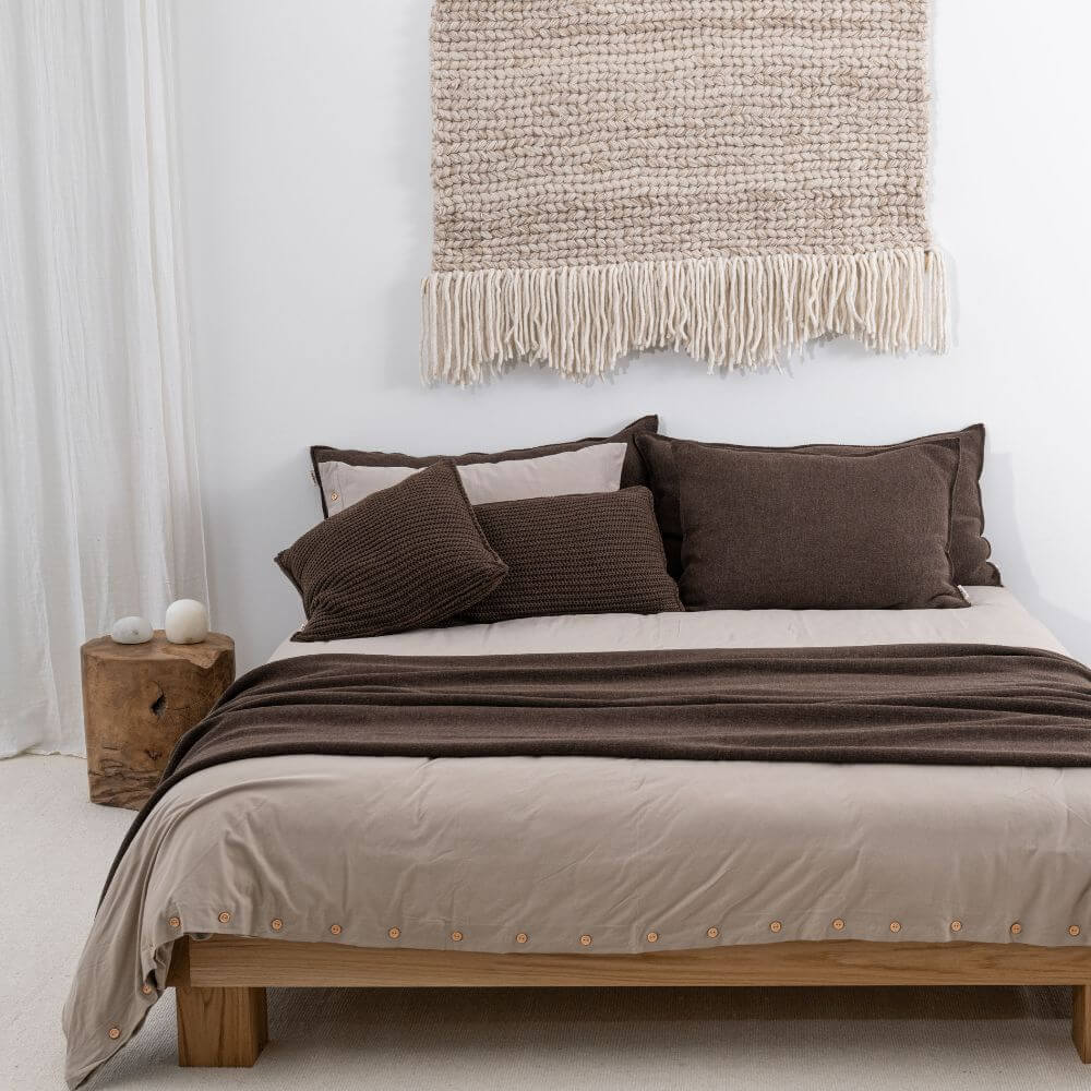 Poszewka ze splotem to subtelne dopełnienie aranżacji inspirowanej spokojną elegancją i minimalistyczną formą. Wykonana z melanżowej przędzy, w popularnym w tym sezonie brązowym odcieniu, zachwyca ozdobną fakturą i miękkością. Jej dekoracyjny, wyrazisty splot nadaje poduszce głębi i sprawia, że poduszka staje się efektowym i bardzo przytulnym elementem zarówno na łóżku, sofie, jak i fotelu.
