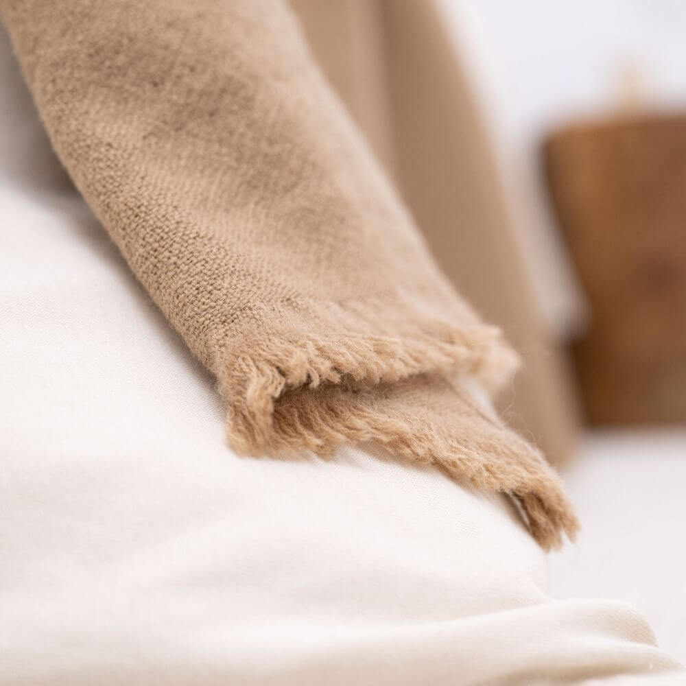 NARZUTA Z WEŁNY Z OZDOBNYM BRZEGIEM JASNOBRĄZOWA