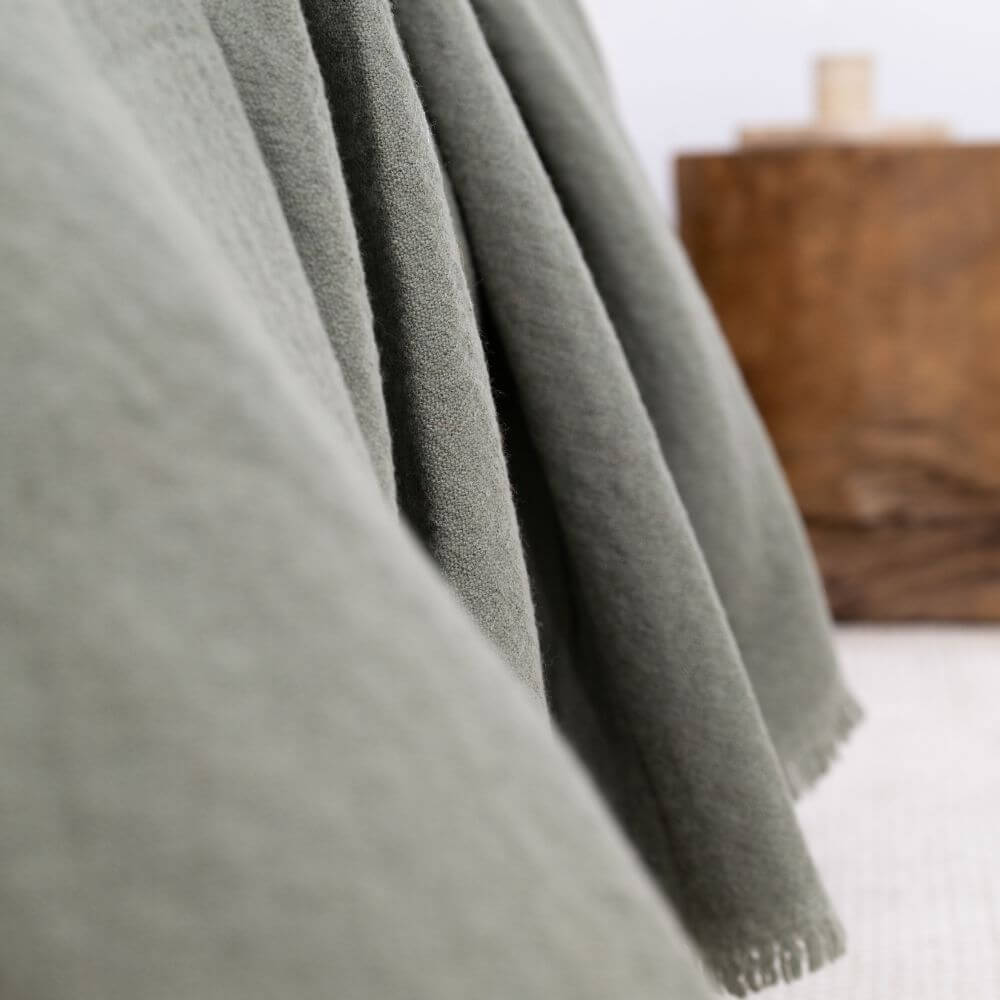 NARZUTA Z WEŁNY Z OZDOBNYM BRZEGIEM OLIWKOWA