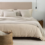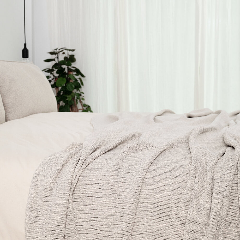 Narzuta jest wykonana z bawełnianej przędzy z recyklingu, ma ozdobny, dekoracyjny splot i piękny, modny odcień. Piaskowy kolor pasuje do naturalnych odcieni: bieli, beży, szarości czy grafitów. Narzuta na łóżko wygląda pięknie z poduszkami dekoracyjnymi z tej samej kolekcji. Jeśli lubisz zestawy monochromatyczne, wybierz poszewki dekoracyjne w tym samym kolorze. Zestaw z poszewkami w różnych kolorach również wygląda pięknie, jeśli dobierzesz je odpowiednio do pozostałych dodatków w swojej sypialni. Koniecznie zestaw ją z naszą gładką pościelą z jerseyu.