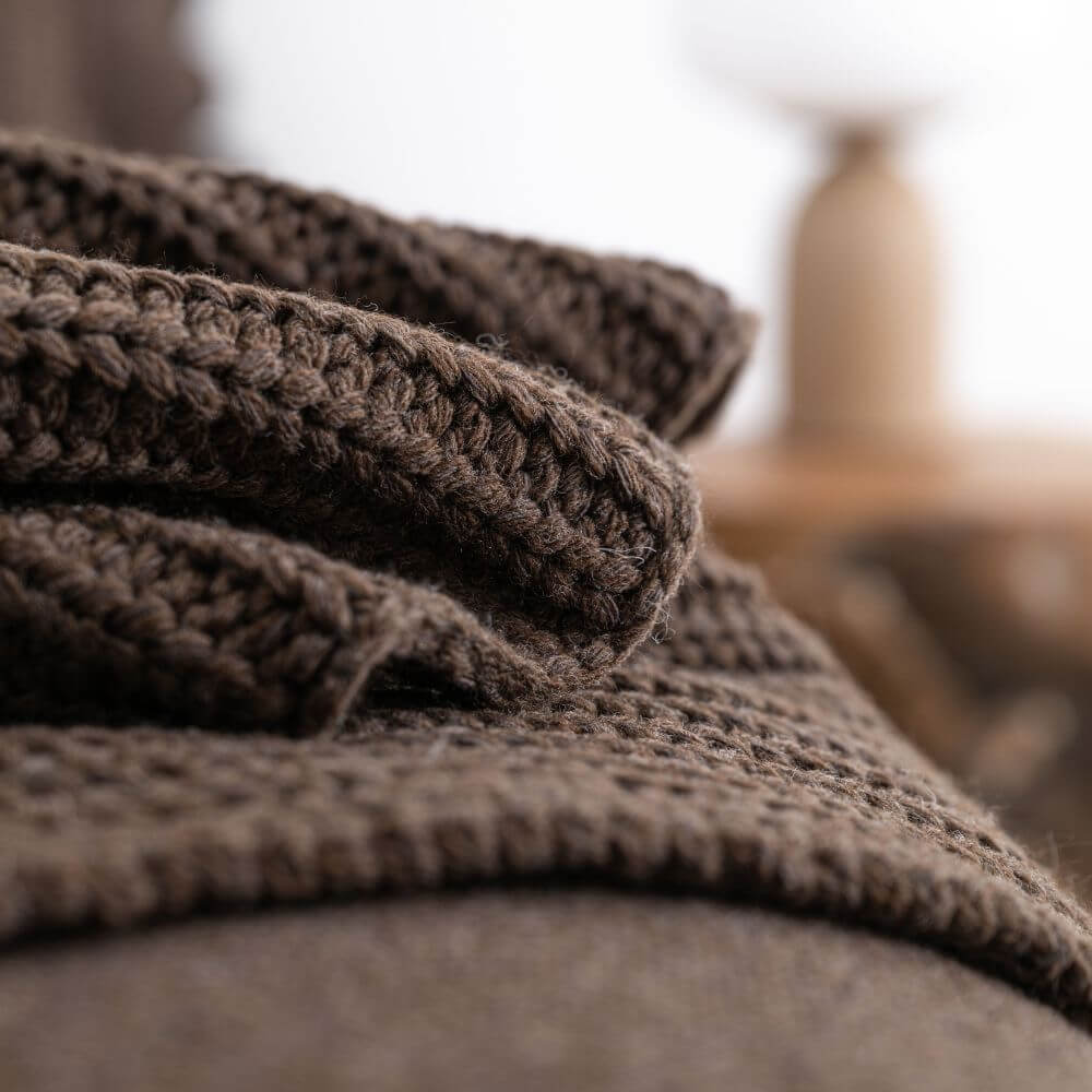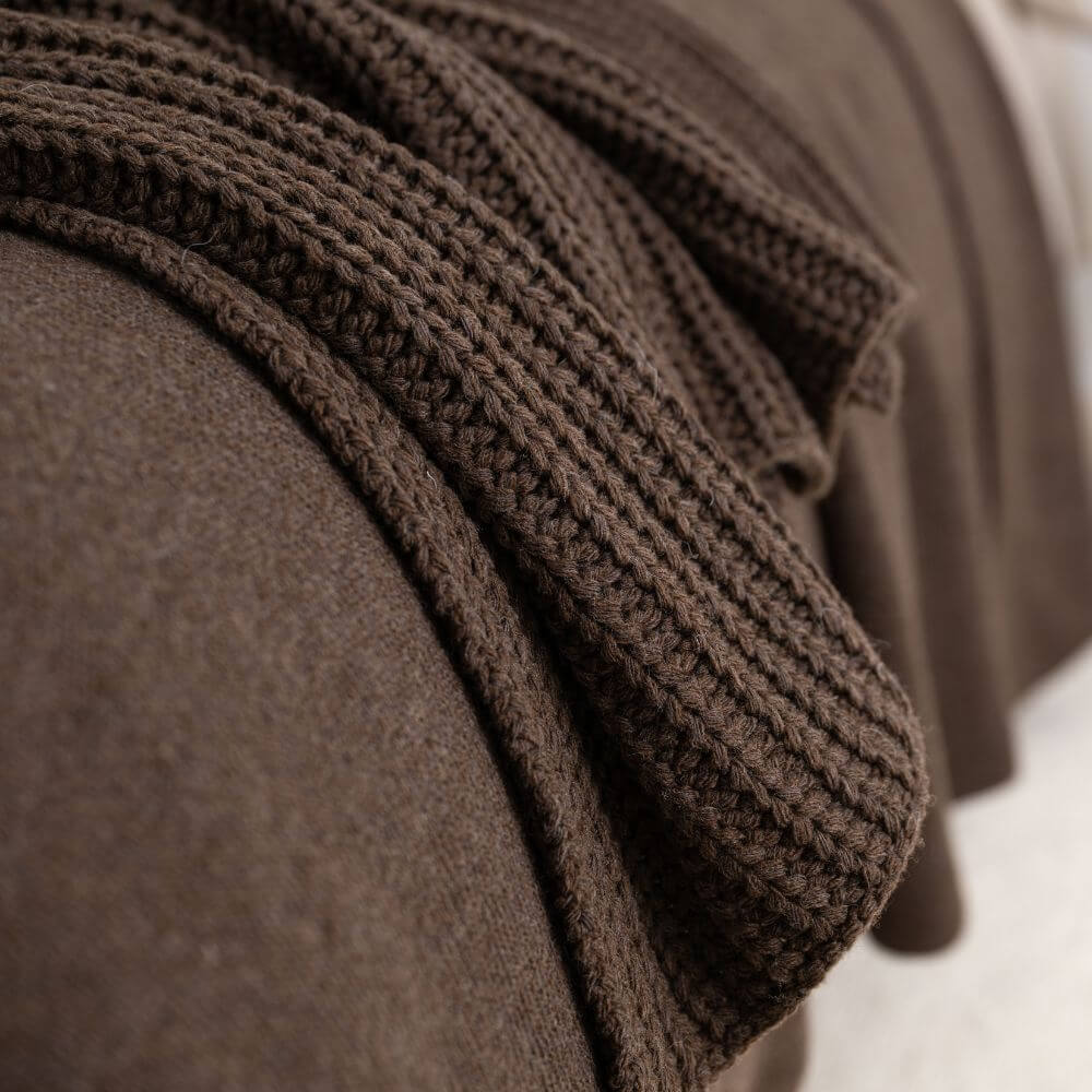 Brązowy pled ze splotem z kolekcji Dwa Sploty to wyrazista propozycja dla miłośników faktur i dopracowanych detali. Ten dekoracyjny koc wykonany z melanżowej przędzy zachwyca miękkością, głębokim kolorem, a jego strukturalny, wyraźny splot nadaje wnętrzu charakteru i przytulności. Piękny, nasycony brąz to hit wnętrzarski, który dodaje aranżacjom elegancji, ciepła i naturalnej, ponadczasowej klasy.