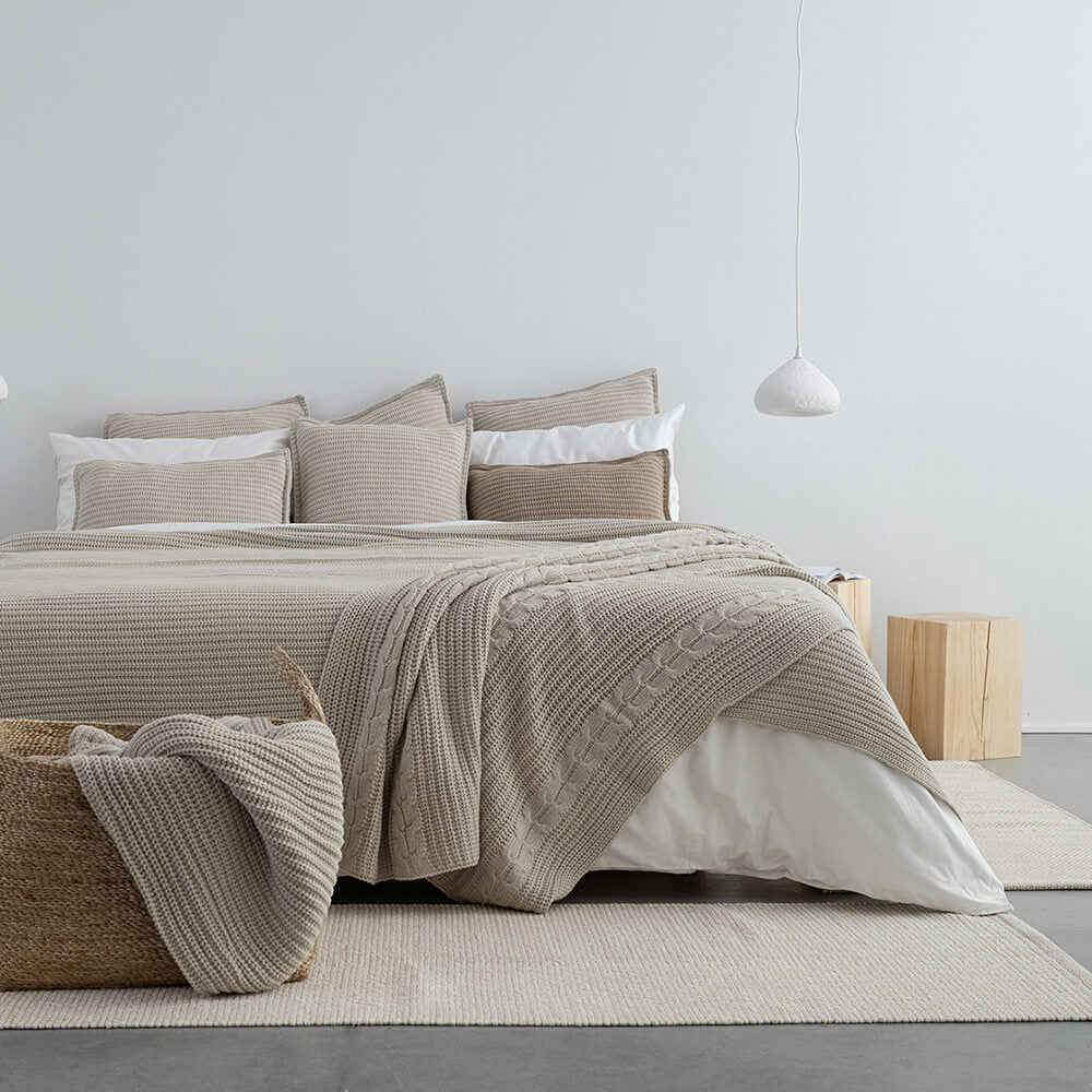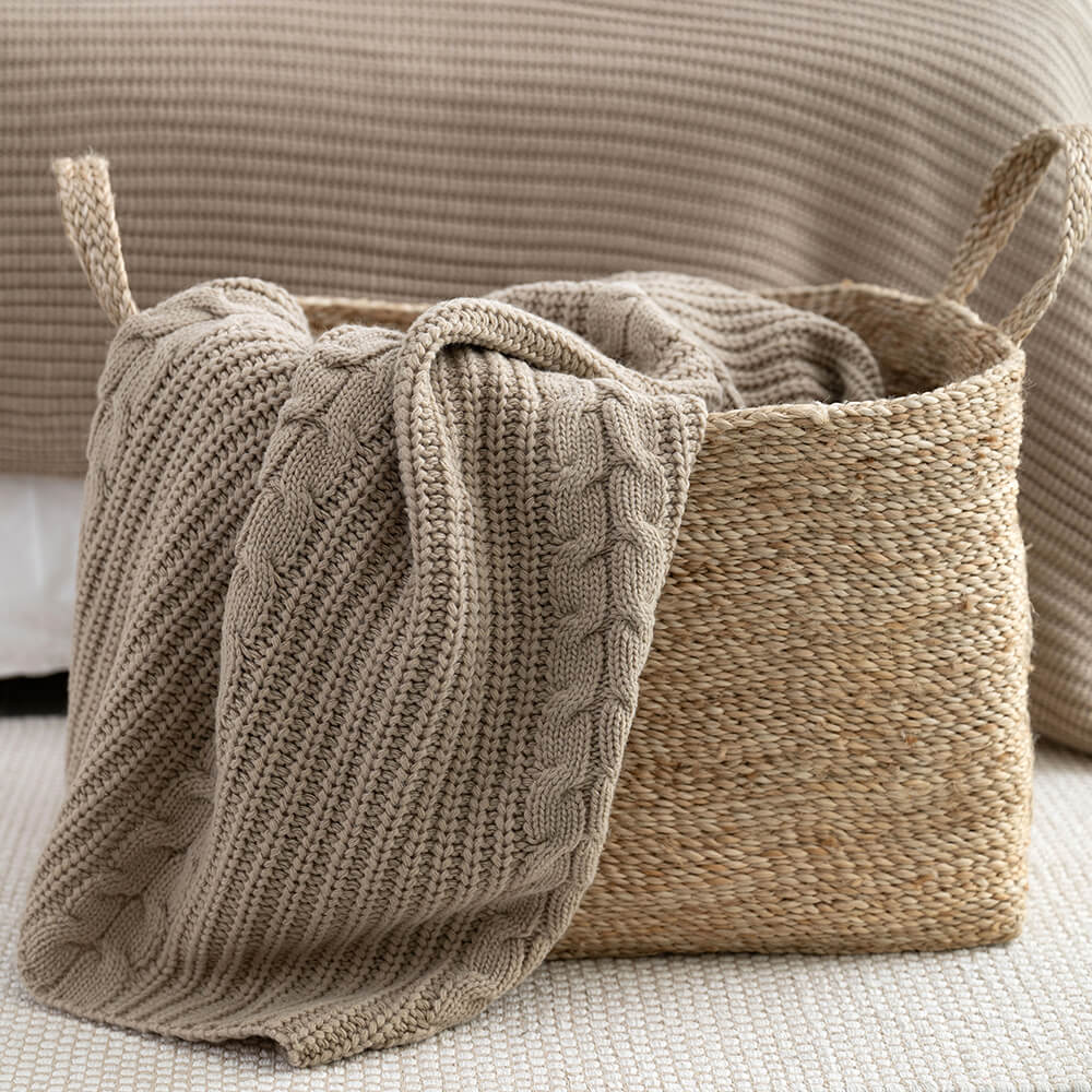 Pled łączy w sobie ozdobny warkoczowy splot z gładkim perłowym ściegiem. Gruba przędza z dodatkiem wełny uwypukla dekoracyjne sploty i sprawia, że koc jest bardzo przytulny i stanowi prawdziwą ozdobę salonowej sofy, czy łóżka w sypialni. Piękny odcień beżu pasuje do wielu naturalnych wnętrz. Koc można połączyć z jedną z trzech poszewek dekoracyjnych z kolekcji wełniany splot w tym samym kolorze. Piękny, ciepły i ozdobny beżowy koc nadaje się w sam raz na chłodniejsze wieczory! Zrób sobie przytulny prezent i miej go pod ręką zawsze wtedy, kiedy potrzebujesz ciepłego otulenia.