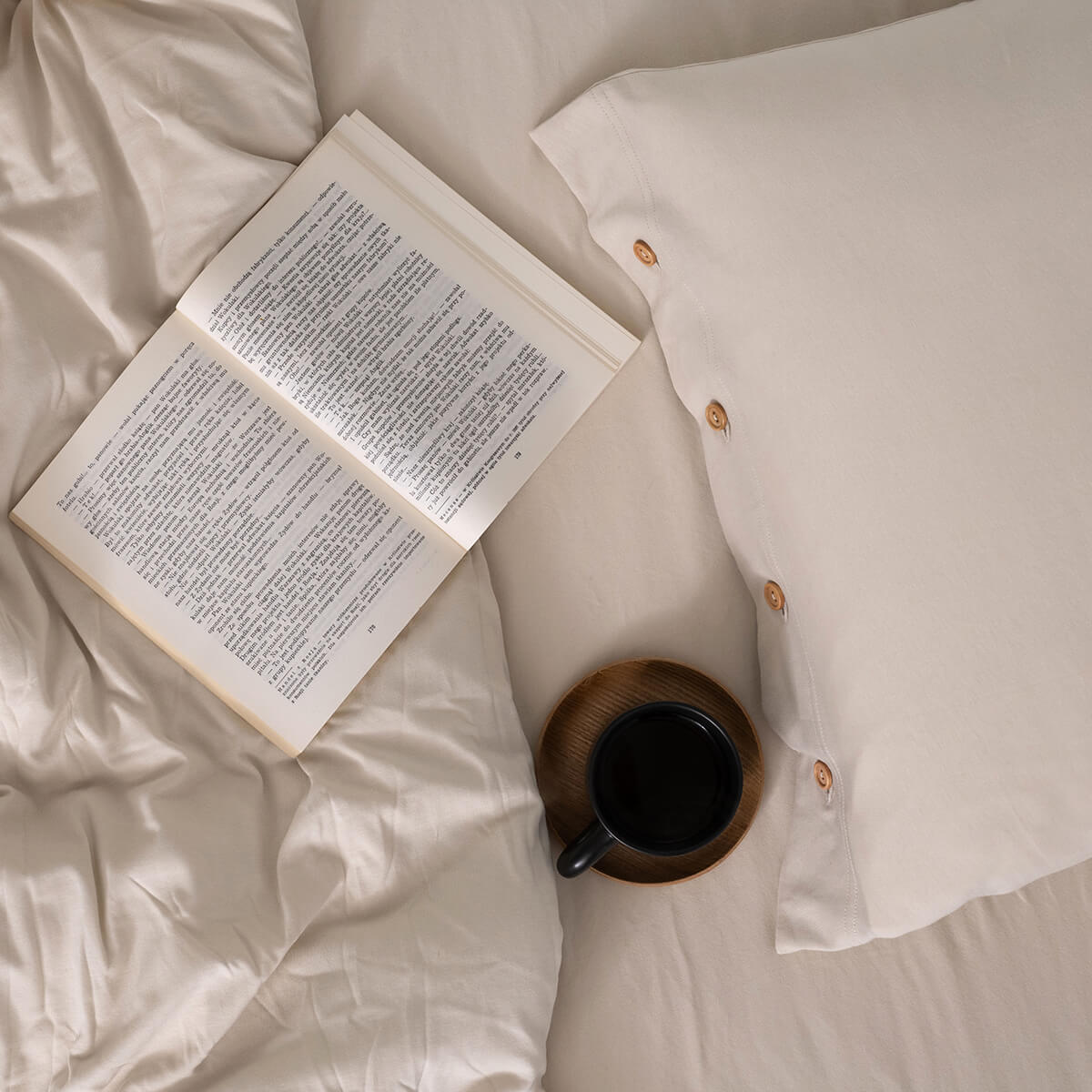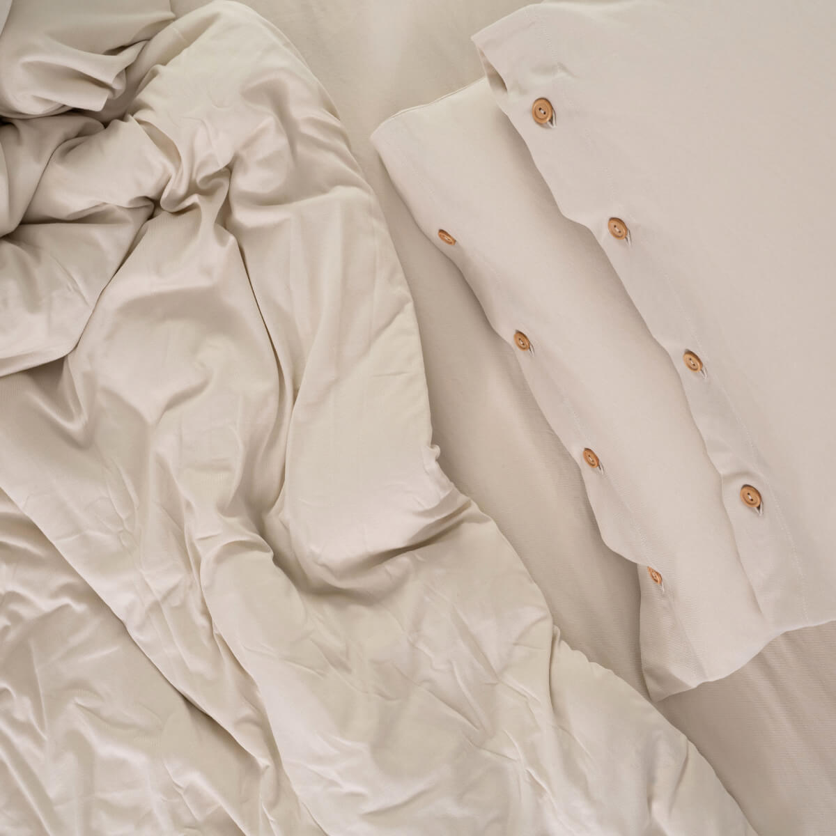Pościel uszyta z wyjątkowej miękkiej i delikatnej dzianiny w kolorze jasnego beżu. Jej naturalny skład powoduje, że skóra oddycha, a pościel jest przyjemna w dotyku jak twój ukochany t-shirt. Poszewki na poduszkę i kołdrę zapinane są na drewniane guziki. Całość nie tylko jest bajecznie przyjemna, ale również i piękna. Pokochasz ją od pierwszego dotyku. Dopasuj swój rozmiar pościeli spośród dostępnych wersji.