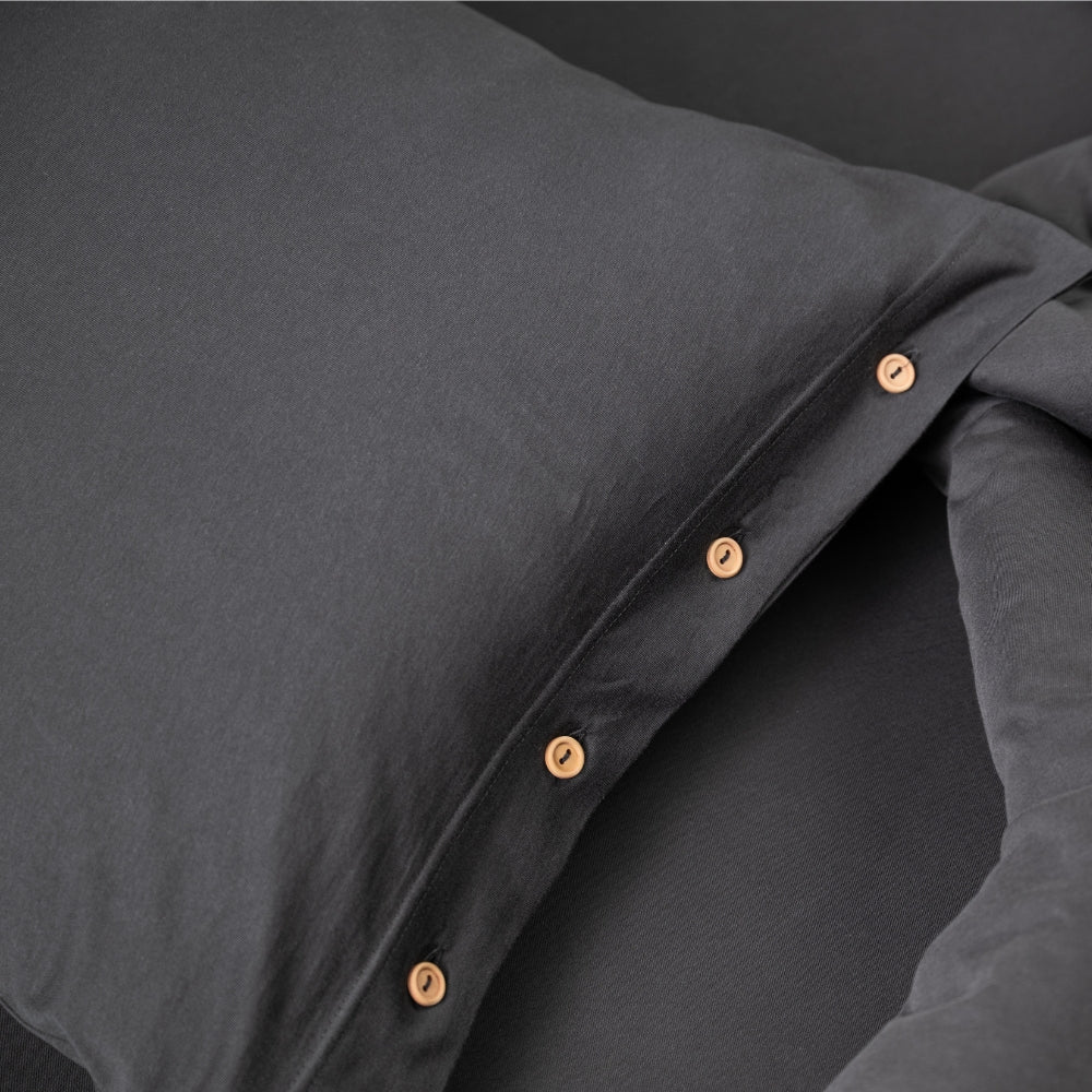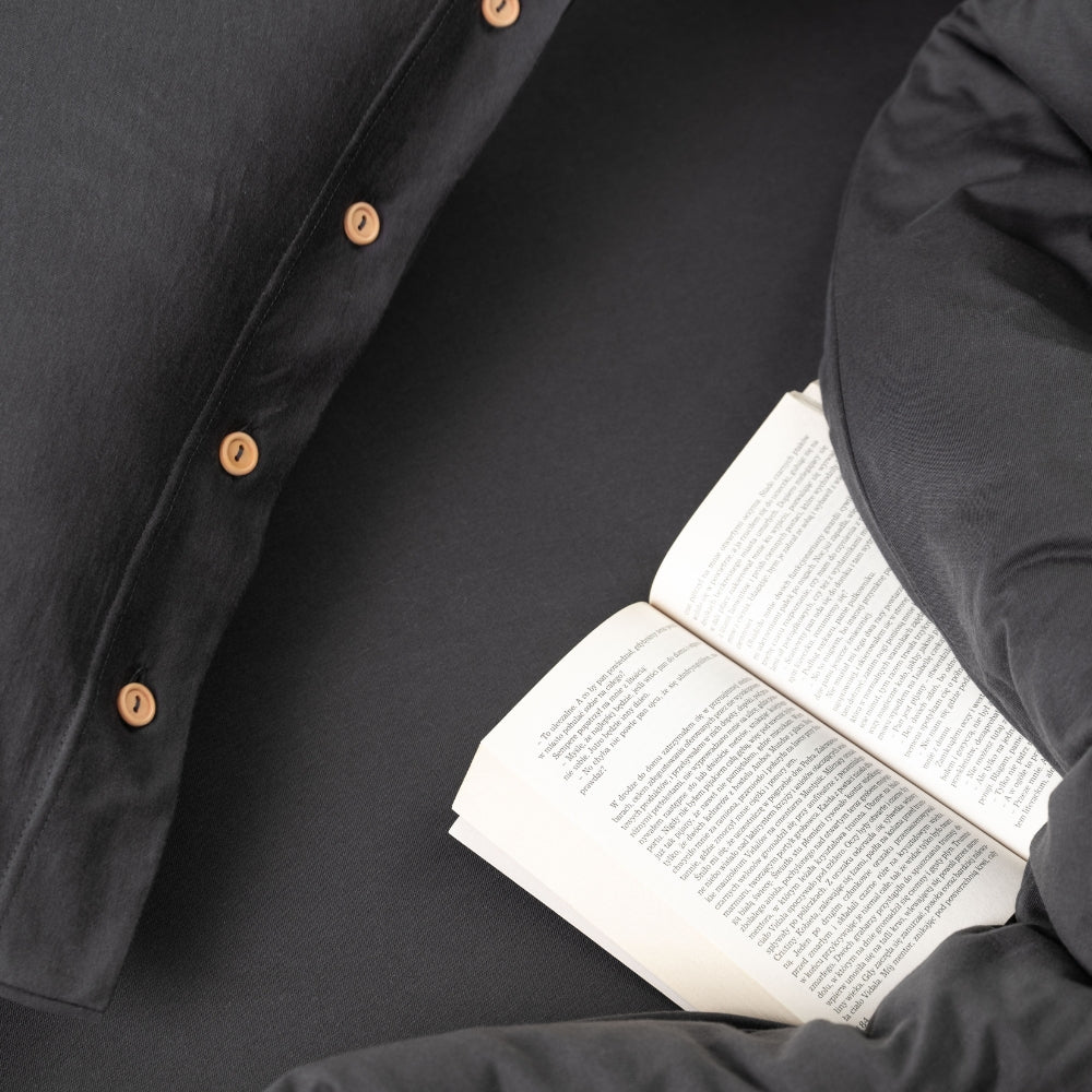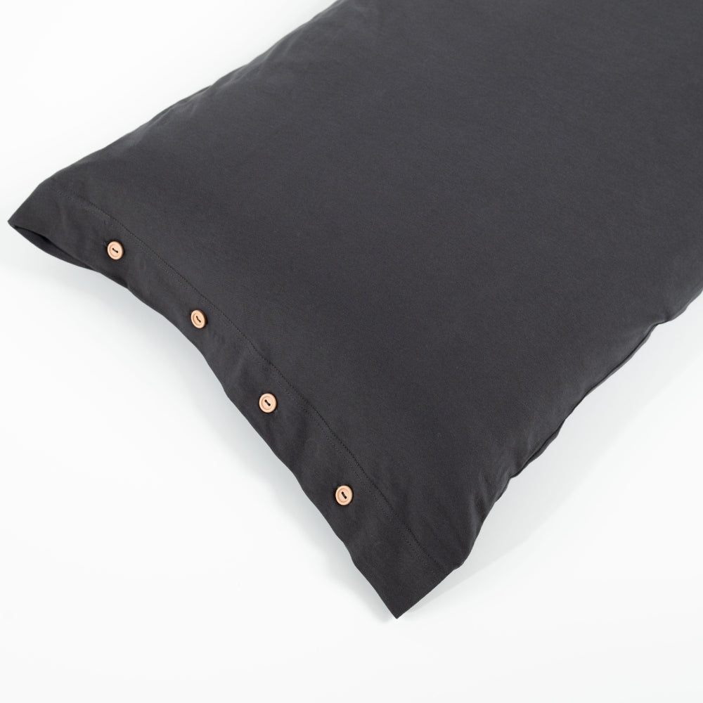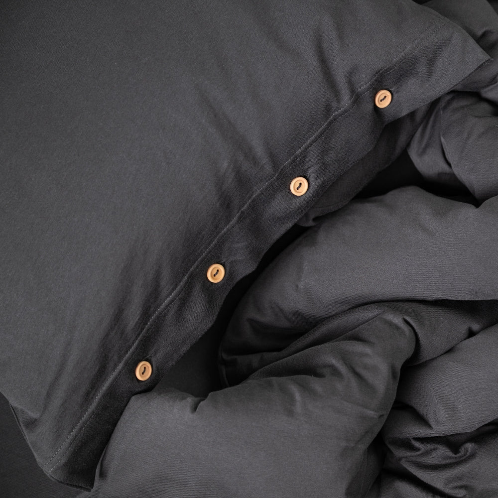 Poszewka na poduszkę uszyta z wyjątkowej miękkiej i delikatnej dzianiny w kolorze antracytowym. Jej naturalny skład powoduje, że skóra oddycha, nie poci się, a poduszka jest przyjemna w dotyku jak twój ukochany t-shirt. Poszewka na poduszkę zapinana jest na drewniane guziki. Poszewka jest nie tylko bajecznie przyjemna, ale również i piękna. Pokochasz ją od pierwszego dotyku. Poszewka pasuje kolorystycznie do każdej wersji pościeli z naszej oferty. Wybierz swój ulubiony rozmiar.