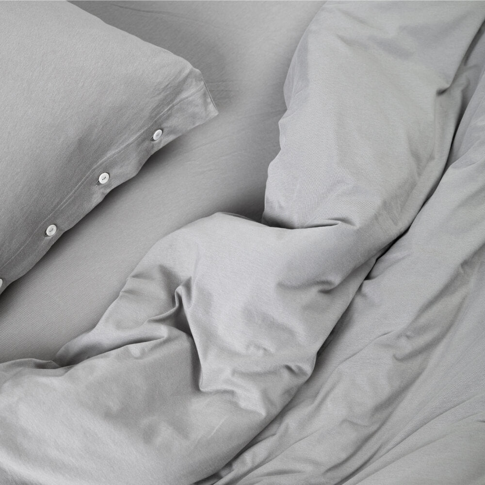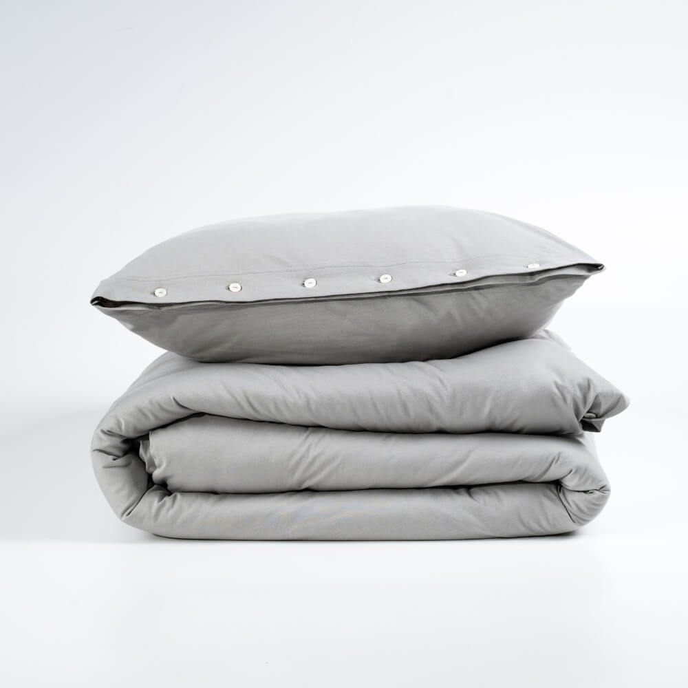 Pościel uszyta z wyjątkowej miękkiej i delikatnej dzianiny w szarym kolorze. Jej naturalny skład powoduje, że skóra oddycha, a pościel jest przyjemna w dotyku jak twój ukochany t-shirt. Poszewka na poduszkę i kołdrę zapinana jest na guziki z masy perłowej, delikatne i stonowane, więc będą pasować niezależnie od stylistyki wnętrza. Całość nie tylko jest bajecznie przyjemna, ale również i piękna. Pokochasz ją od pierwszego dotyku. Dopasuj swój rozmiar pościeli spośród dostępnych wersji.