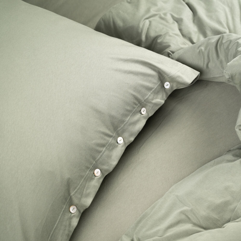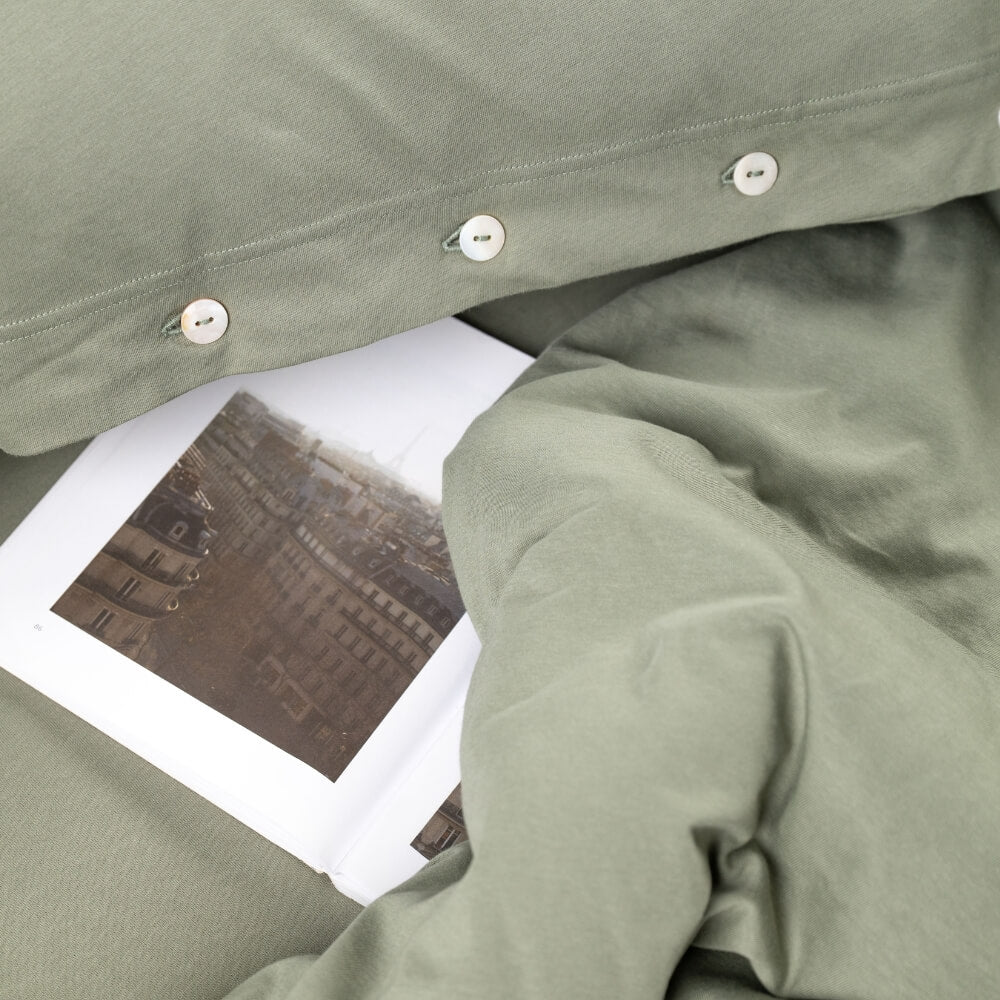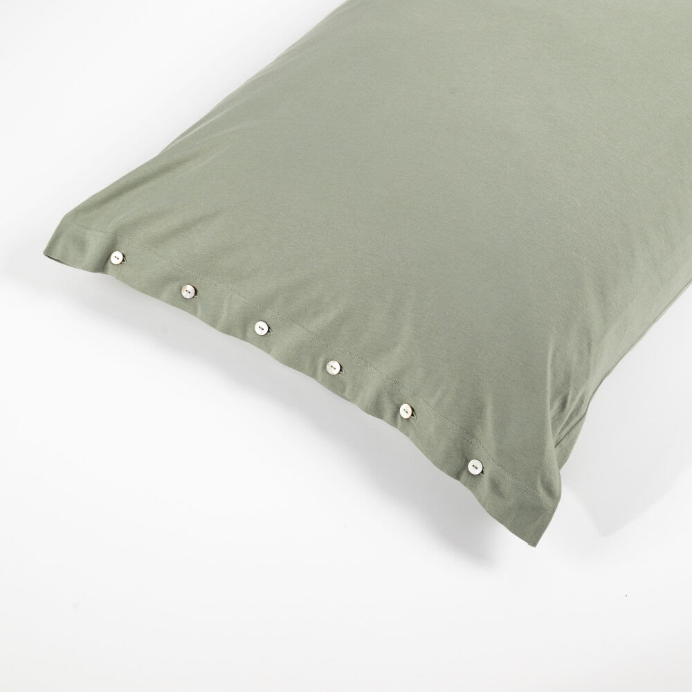 Poszewka na poduszkę uszyta z wyjątkowej miękkiej i delikatnej dzianiny jersey w kolorze oliwkowym. Jej naturalny skład powoduje, że skóra oddycha, nie poci się, a poduszka jest przyjemna w dotyku jak twój ukochany t-shirt. Poszewka na poduszkę zapinana jest na guziki z masy perłowej, delikatne i stonowane, więc będą pasować niezależnie od stylistyki wnętrza. Poszewka jest nie tylko bajecznie przyjemna, ale również i piękna. Pokochasz ją od pierwszego dotyku. Poszewka pasuje kolorystycznie do pościeli oliwkowej z naszej oferty. Wybierz swój ulubiony rozmiar.