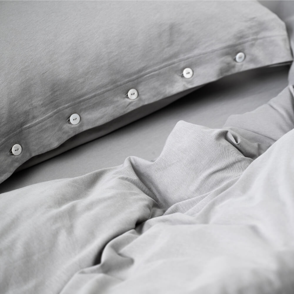 Poszewka na poduszkę uszyta z wyjątkowej miękkiej i delikatnej dzianiny jersey w kolorze szarym. Jej naturalny skład powoduje, że skóra oddycha, nie poci się, a poduszka jest przyjemna w dotyku jak twój ukochany t-shirt. Poszewka na poduszkę zapinana jest na guziki z masy perłowej, delikatne i stonowane, więc będą pasować niezależnie od stylistyki wnętrza. Poszewka jest nie tylko bajecznie przyjemna, ale również i piękna. Pokochasz ją od pierwszego dotyku. Poszewka pasuje kolorystycznie do pościeli oliwkowej z naszej oferty. Wybierz swój ulubiony rozmiar.