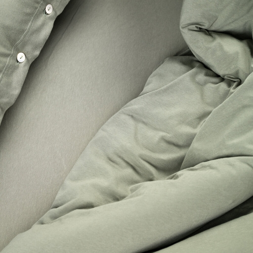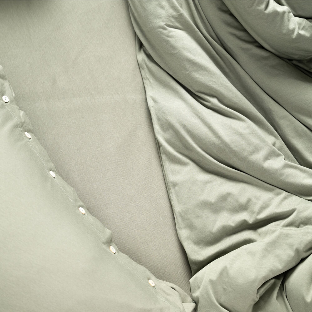 Prześcieradło z gumką uszyte z wyjątkowo miękkiej i delikatnej dzianiny jersey w kolorze pięknej oliwki. Jej naturalny skład powoduje, że skóra oddycha, nie poci się, a prześcieradło jest przyjemne w dotyku, jak twój ukochany t-shirt. Pokochasz je od pierwszego dotyku.