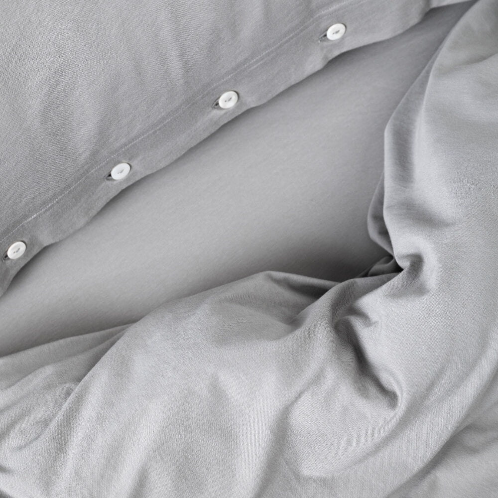 Prześcieradło z gumką uszyte z wyjątkowo miękkiej i delikatnej dzianiny jersey w kolorze szarości. Jej naturalny skład powoduje, że skóra oddycha, nie poci się, a prześcieradło jest przyjemne w dotyku, jak twój ukochany t-shirt. Pokochasz je od pierwszego dotyku.