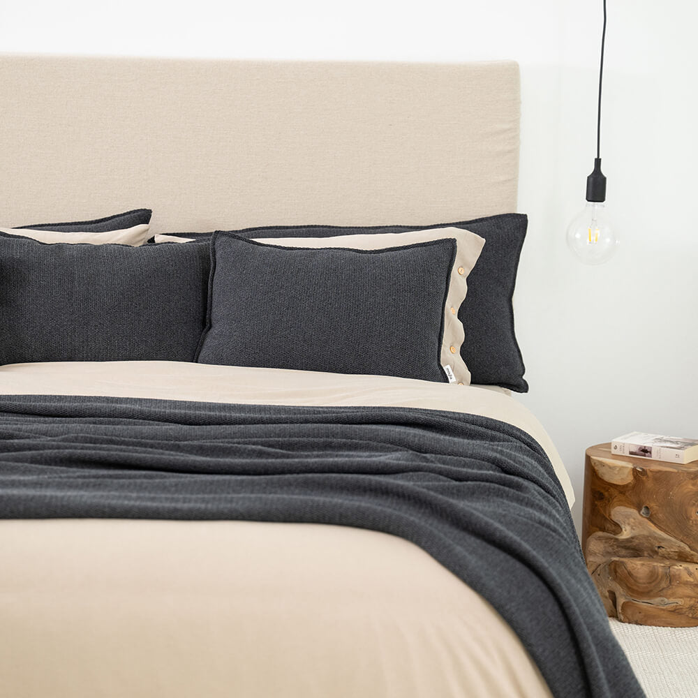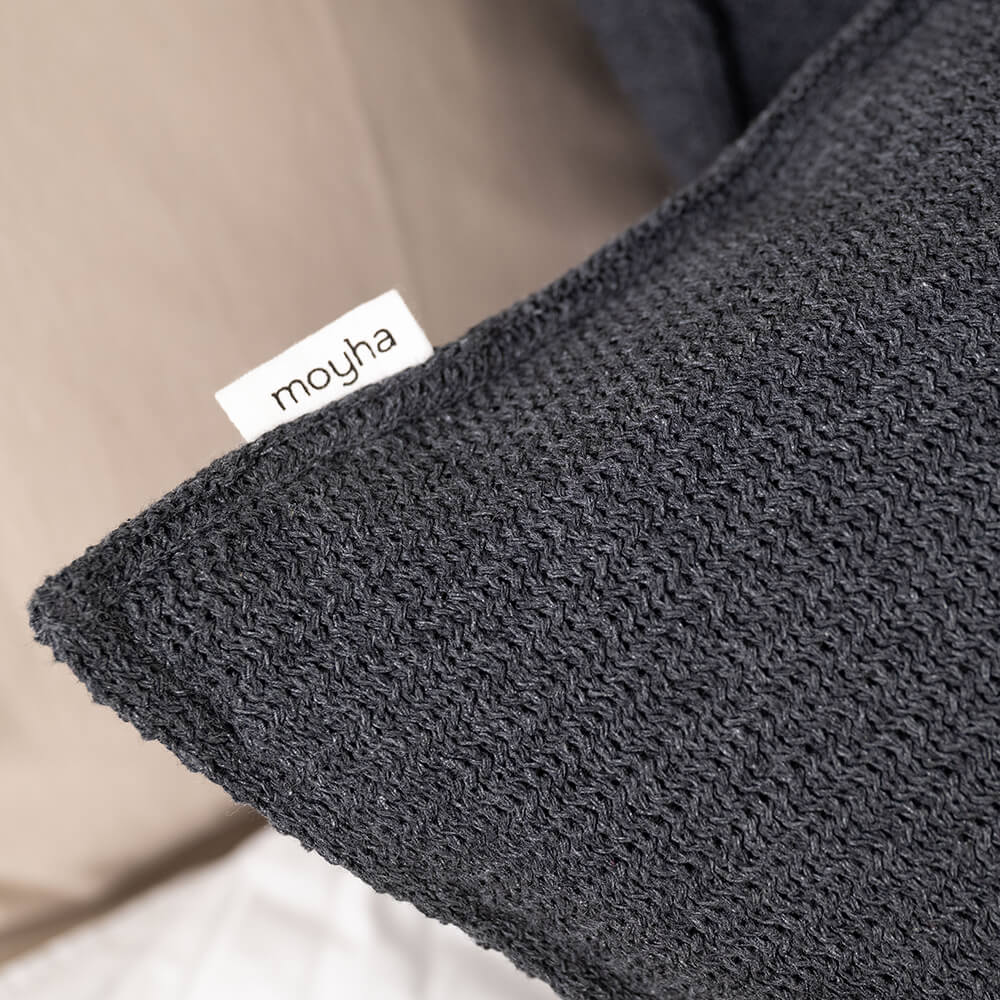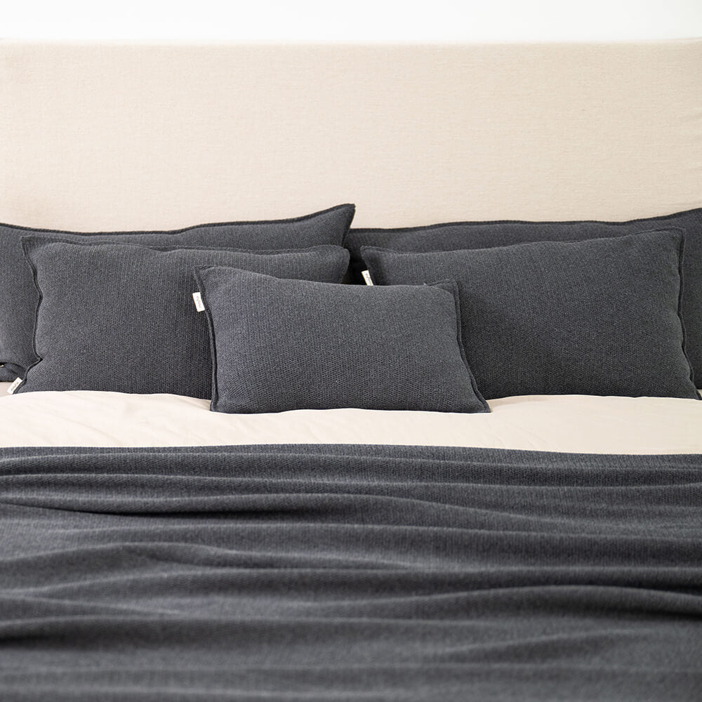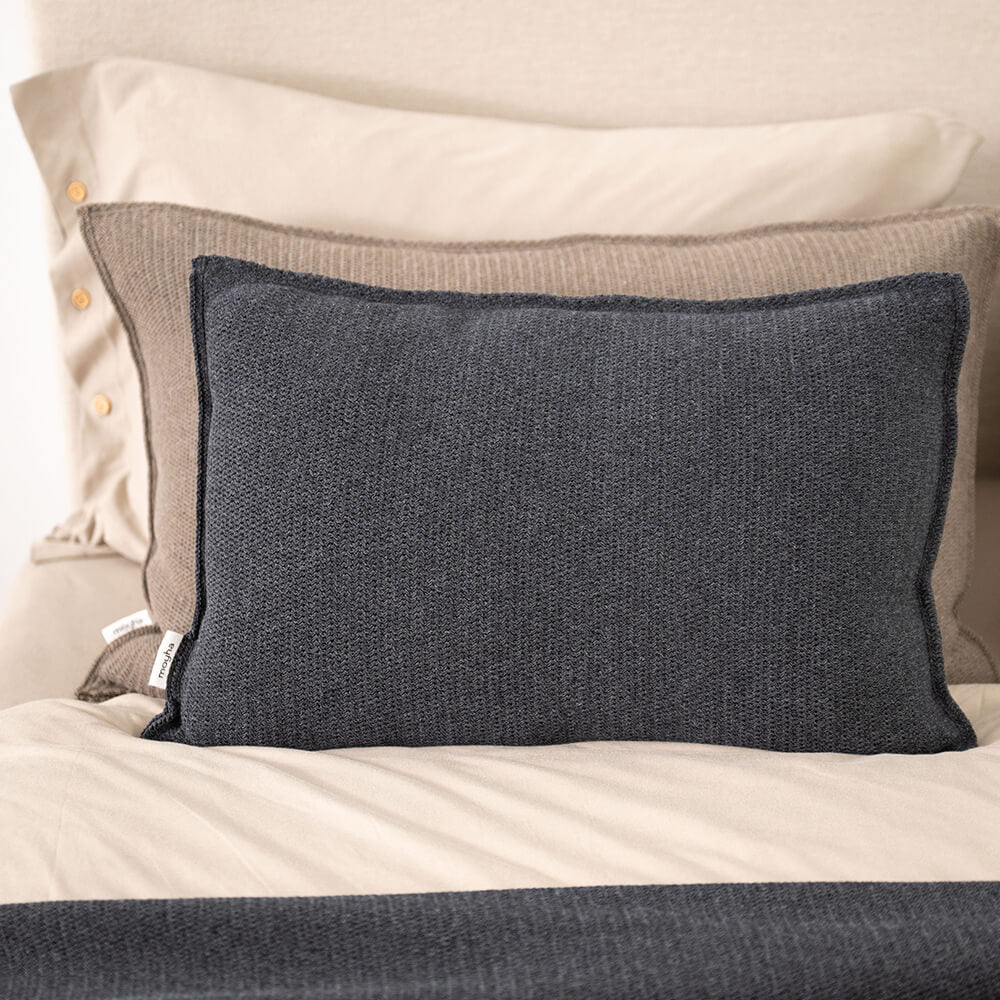 Poszewka wykonana jest z bawełnianej przędzy z recyklingu. Ma niezwykle subtelny splot, który powoduje, że cała kolekcja tekstyliów wygląda lekko i delikatnie. Grafitowy kolor pasuje do jasnych odcieni inspirowanych naturą. Jeśli więc masz we wnętrzu biel, drewno, beże i szarości, masz gwarancję, że ta poduszka będzie do nich pięknie pasować! Poduszki wyglądają najpiękniej w zestawie z pledem, narzutą lub innymi poduszkami w innych rozmiarach z tej samej kolekcji.