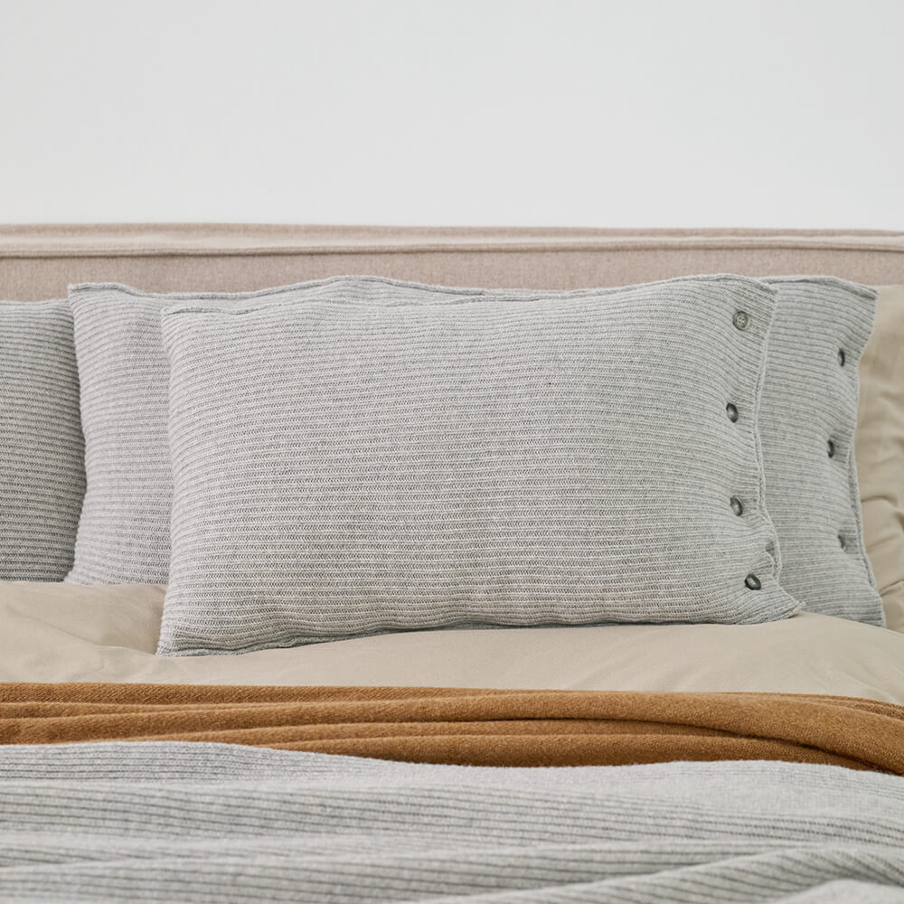 Jeśli uwielbiasz otaczać się pięknymi i prostymi przedmiotami, to ta poduszka jest właśnie dla Ciebie! Ma piękny, prosty, klasyczny splot, szary kolor, a zawartość szlachetnej i mięciutkiej wełny sprawia, że jest przytulna i idealnie nadaje się do ozdoby salonowej sofy, ulubionego fotela czy wezgłowia łóżka w sypialni. Wspaniale komponuje się z pledem lub poduszkami z tej samej kolekcji w większym rozmiarze.