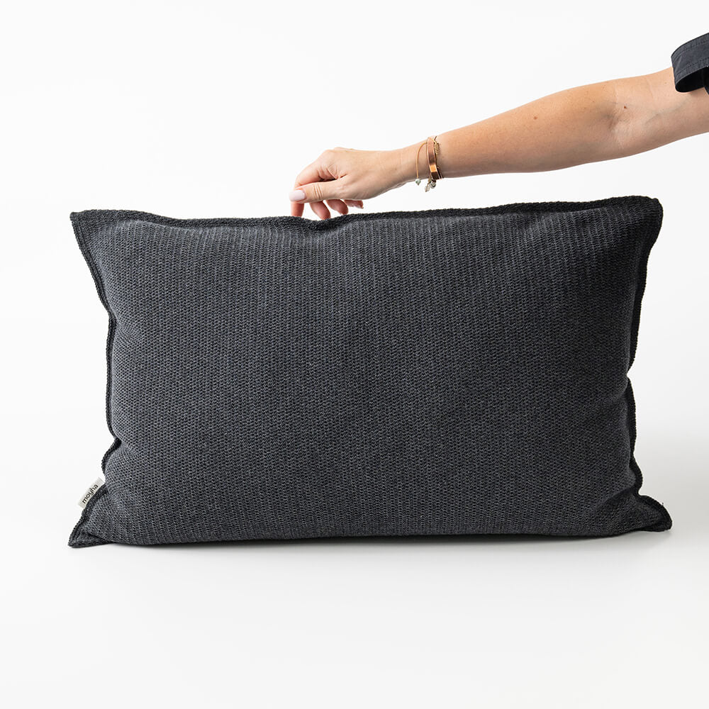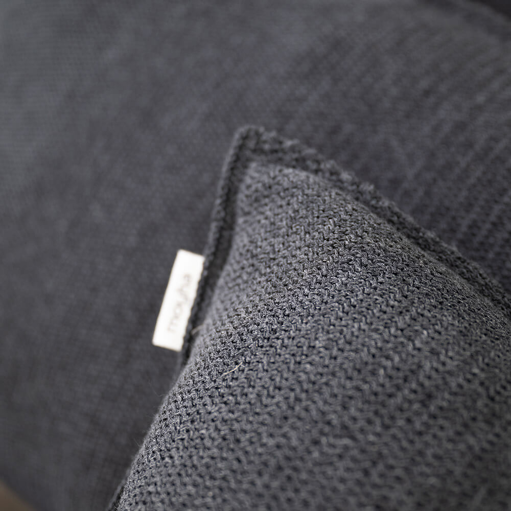Poszewka wykonana jest z bawełnianej przędzy z recyklingu. Ma niezwykle subtelny splot, który powoduje, że cała kolekcja tekstyliów wygląda lekko i delikatnie. Piękny, grafitowy kolor pasuje do jasnych odcieni inspirowanych naturą. Jeśli więc masz we wnętrzu biel, drewno, beże i szarości, masz gwarancję, że ta poduszka będzie do nich pięknie pasować! Poduszki wyglądają najpiękniej w zestawie z narzutą, pledem i poduszkami w innych rozmiarach z tej samej kolekcji.