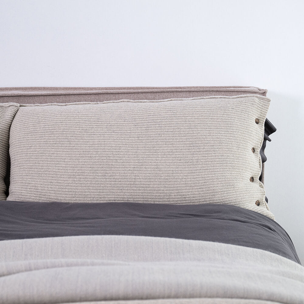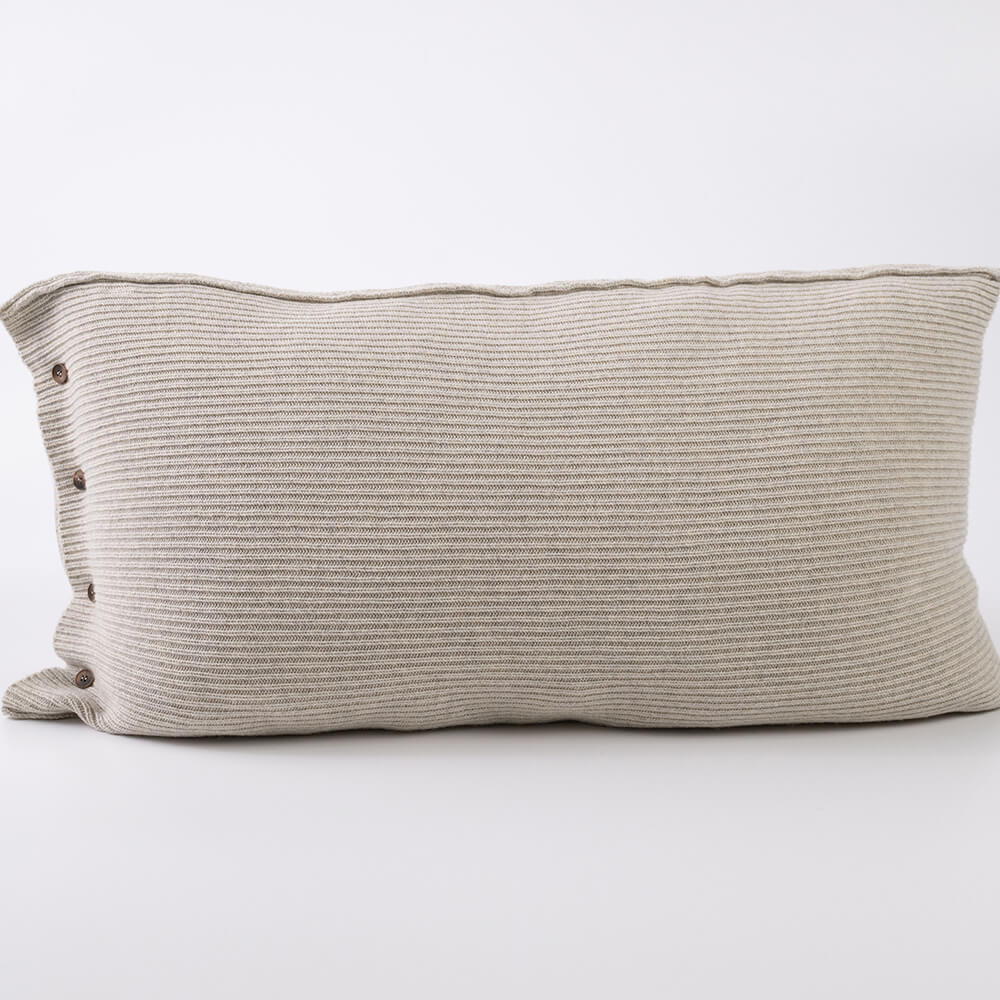 Jeśli uwielbiasz otaczać się pięknymi i prostymi przedmiotami, to ta poduszka jest właśnie dla Ciebie! Ma piękny, prosty, klasyczny splot, nowy kremowo-szary kolor, a zawartość szlachetnej i mięciutkiej wełny sprawia, że idealnie nadaje się do ozdoby wezgłowia łóżka w sypialni. Wspaniale komponuje się z pledem lub poduszkami z tej samej kolekcji w mniejszym rozmiarze.