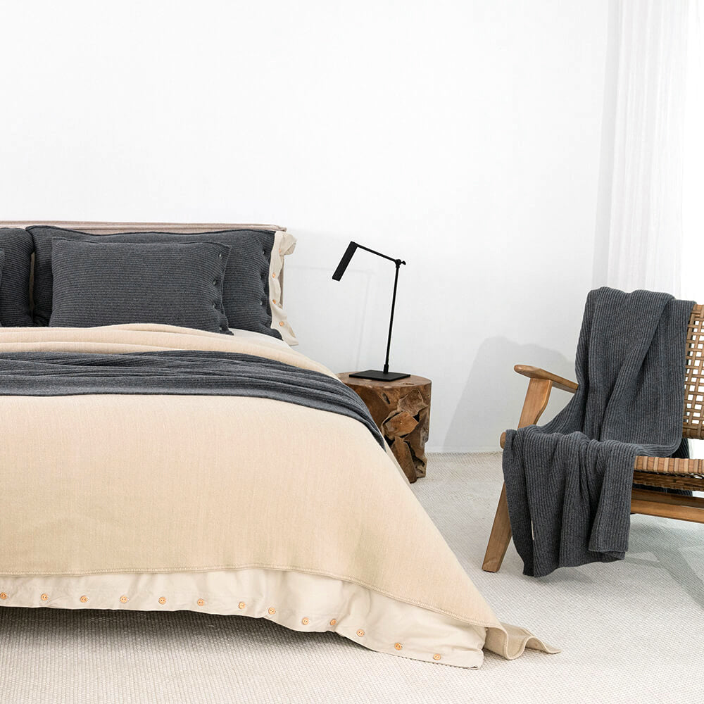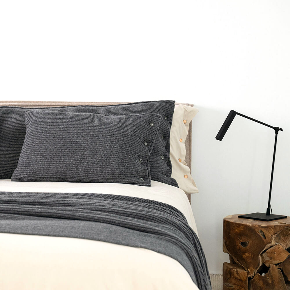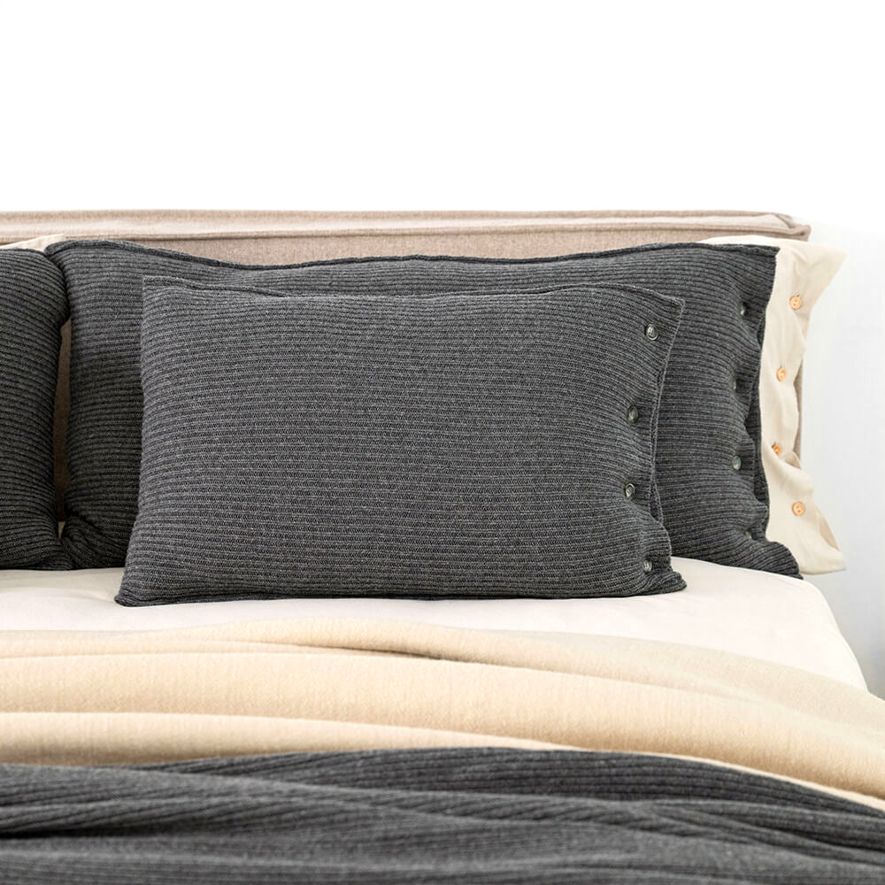 Jeśli uwielbiasz otaczać się pięknymi i prostymi przedmiotami, to ta poduszka jest właśnie dla Ciebie! Ma piękny, prosty, klasyczny splot, grafitowy kolor, a zawartość szlachetnej i mięciutkiej wełny sprawia, że jest przytulna i idealnie nadaje się do ozdoby salonowej sofy, ulubionego fotela czy wezgłowia łóżka w sypialni. Wspaniale komponuje się z pledem lub poduszkami z tej samej kolekcji w większym rozmiarze.