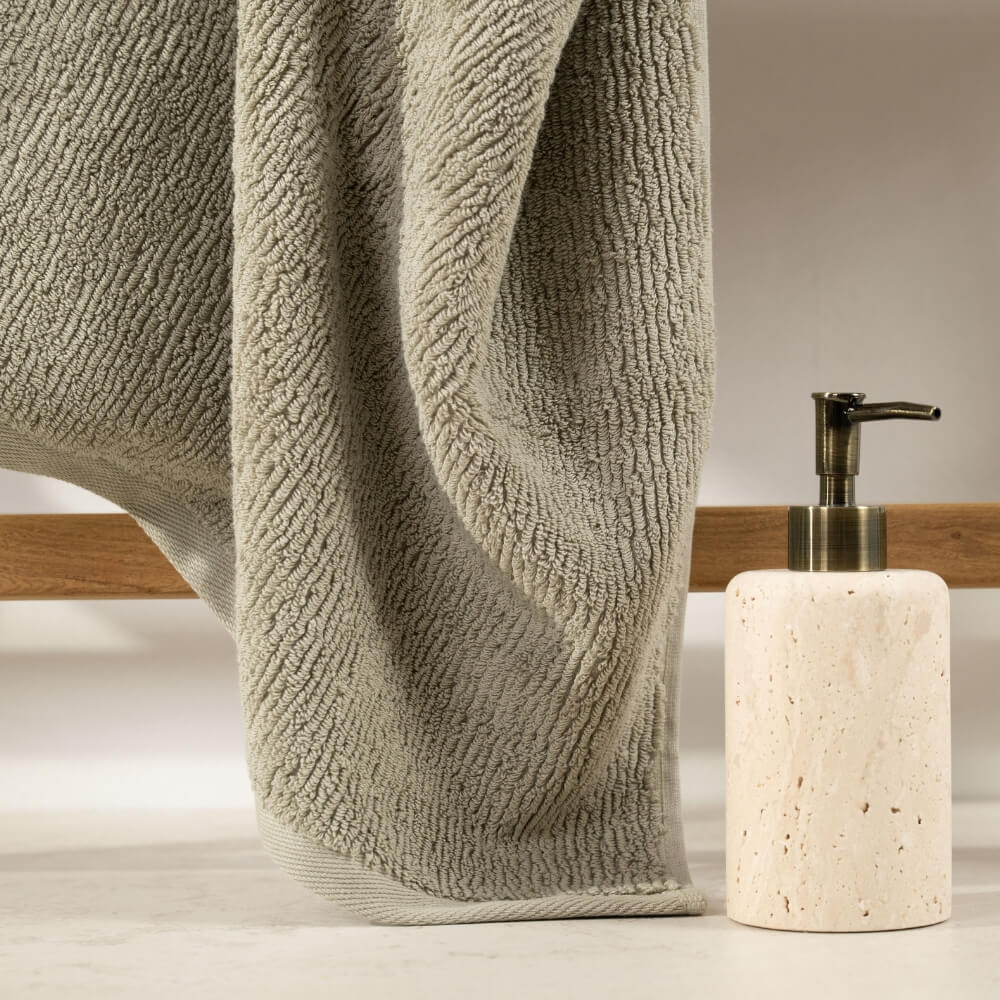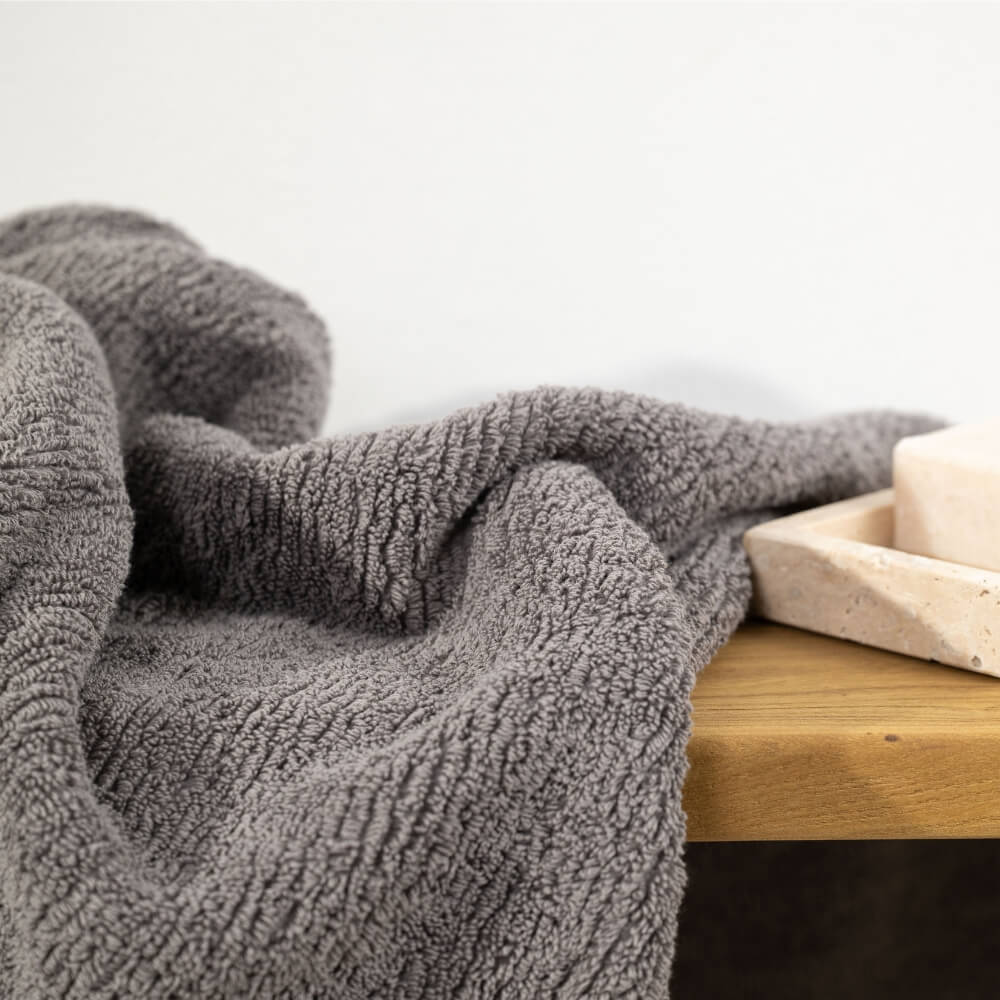 Jeszcze grubsze i bardziej mięsiste. Mają ozdobną fakturę w nieregularne prążki, która dodaje im charakteru, zachowując jednocześnie minimalistyczny styl. Także dostępne w czterech eleganckich kolorach. Ta kolekcja powstała po to, aby umożliwić rozróżnienie ręczników w łazience dla kilku domowników bez konieczności posiadania ręczników w kilku różnych kolorach. Wybierz jeden ręcznik gładki, a drugi strukturalny w tym samym kolorze.