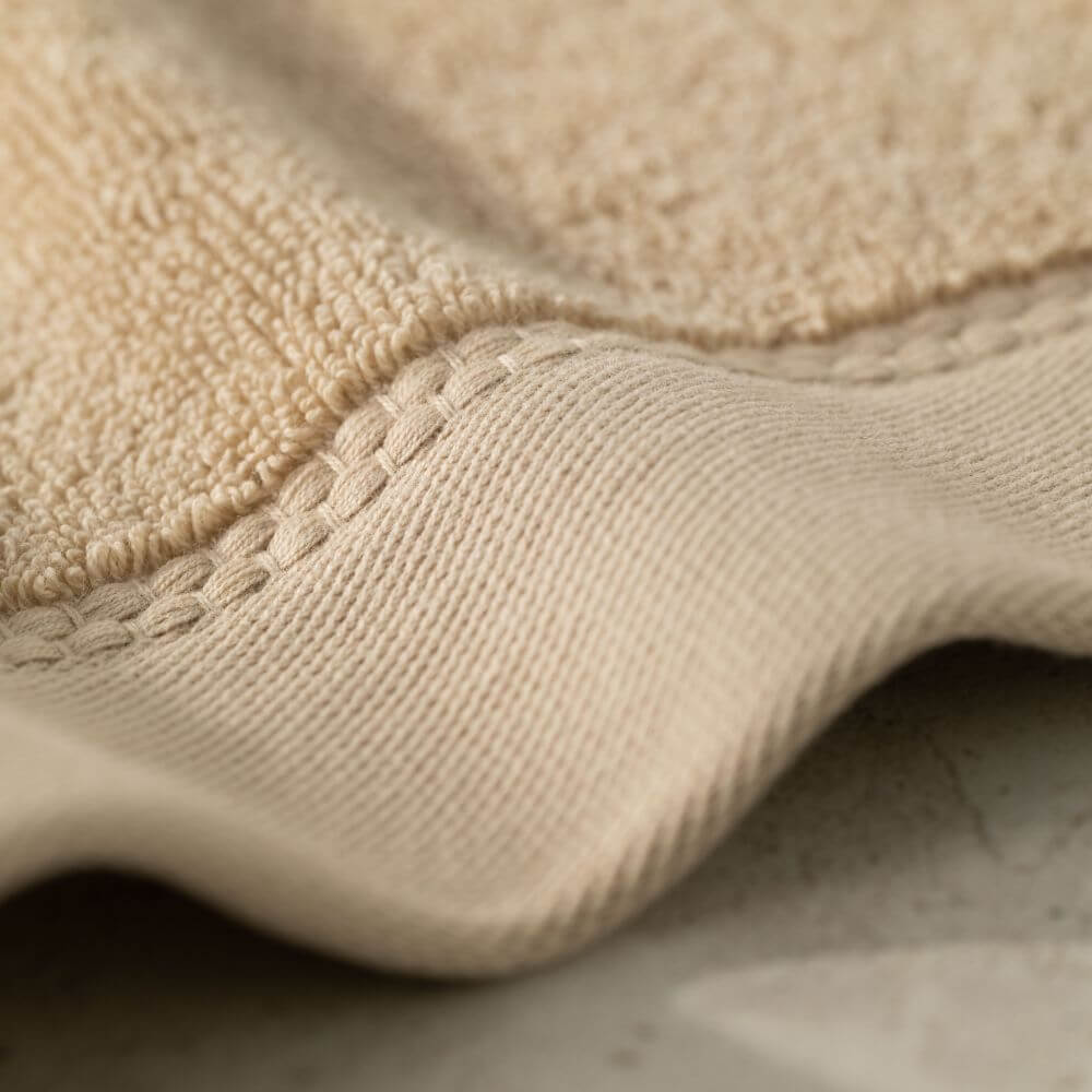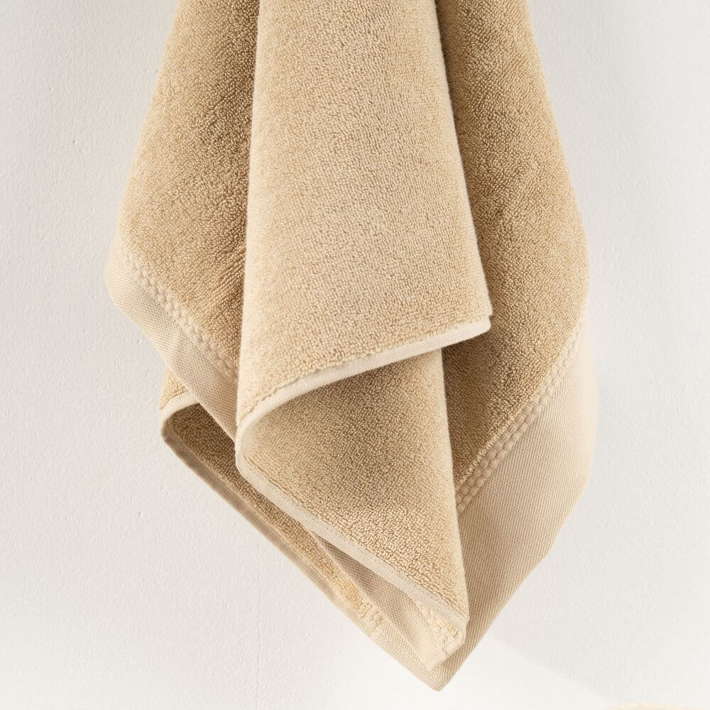 Ręcznik do rąk premium z miękkiej frotte w kolorze beżowym. Ręcznik obszyty jest grubą, bawełnianą ozdobną lamówką. Wybierz rozmiar, który lubisz najbardziej. Do wyboru: mniejszy - 30x50 cm - ręcznik do rąk lub do twarzy lub większy- klasyczny ręcznik do rąk w rozmiarze 50x90 cm. Nasze ręczniki wykonane są z wysokogatunkowej, miękkiej i grubej bawełny, zachwycają prostym designem, puszystością i wyjątkową chłonnością.