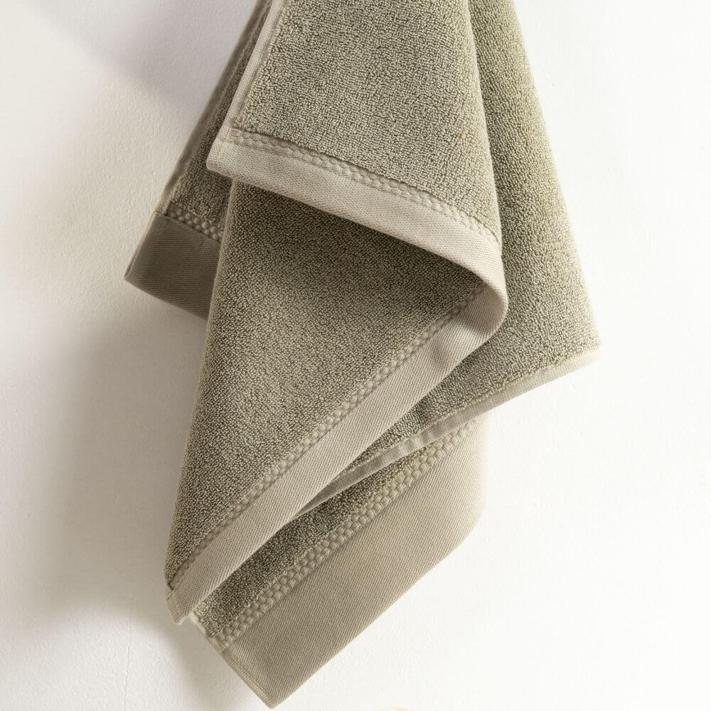 Ręcznik kąpielowy premium z miękkiej frotte w kolorze oliwkowym. Ręcznik obszyty jest grubą, bawełnianą ozdobną lamówką. Wybierz jeden z dwóch kąpielowych rozmiarów: klasyczny rozmiar kąpielowy 70x140cm lub nasz największy rozmiar 90x150cm. Nasze ręczniki wykonane są z wysokogatunkowej, miękkiej i grubej bawełny, zachwycają prostym designem, puszystością i wyjątkową chłonnością. Jeśli potrzebujesz ręczników w jednym kolorze dla dwóch osób, rozróżnij je strukturą: wybierz jeden ręcznik premium z miękkiej frotte i drugi ręcznik z miękkiej bawełny. Będzie pięknie i praktycznie zarazem.