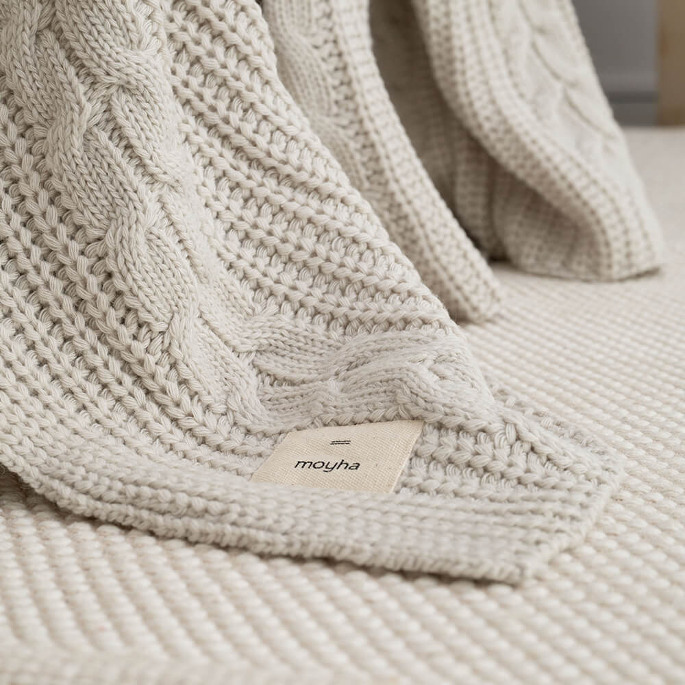 Pled łączy w sobie ozdobny warkoczowy splot z gładkim perłowym ściegiem. Gruba przędza z dodatkiem wełny uwypukla dekoracyjne sploty i sprawia, że koc jest bardzo przytulny i stanowi prawdziwą ozdobę salonowej sofy, czy łóżka w sypialni. Piękny, jasny, kremowy kolor kolor pasuje do wielu naturalnych wnętrz. Kremowy koc można połączyć z jedną z trzech poszewek dekoracyjnych z kolekcji wełniany splot w tym samym kolorze. Piękny, ciepły i ozdobny pled z wełny nadaje się w sam raz na chłodniejsze wieczory! Zrób sobie przytulny prezent i miej go pod ręką zawsze wtedy, kiedy potrzebujesz ciepłego otulenia.