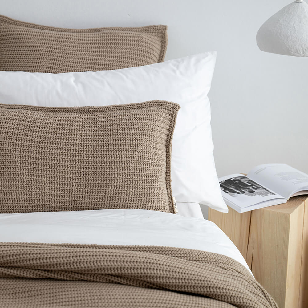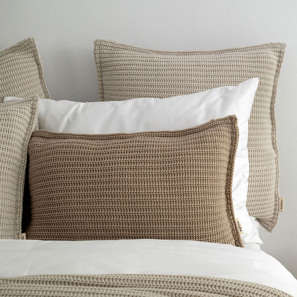 POSZEWKA BEŻOWA 60X40 CM Z WEŁNIANYM SPLOTEM