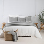 The Lazy Morning bedspread has a simple, loose weave, is soft and pleasant to the touch, a pleasure to wrap yourself in. It features a 100% recycled cotton blend and muted colors. collection They'll bring a natural feel to your bedroom. The light gray color pairs perfectly with our white knit or satin bedding!