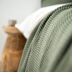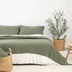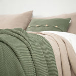 This bedspread has a simple, loose weave, is soft and pleasant to the touch, a pleasure to wrap yourself in. The 100% recycled cotton blend and the muted colors of the Lazy Morning Collection will bring a natural feel to your bedroom. The beautiful olive green pairs perfectly with our white bedding, available in knit or satin! Be sure to also check out the matching decorative pillowcase set!