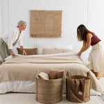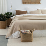 A beige bedspread is a great option for true lovers of warm wool. The benefits of woolen products go without saying, but it's worth emphasizing its natural and warm character, especially appreciated during the colder months. So if you enjoy spending time on a made bed and sometimes take an afternoon nap, a wool bedspread will also make a wonderful and warm cover. 100% wool, a delicate beige color, and a beautiful herringbone pattern are a pure classic appreciated by connoisseurs that won't go out of style for long. The bedspread has a popular size of 220x240 cm and fits beds with a 160x200 cm or 180x200 cm mattress. Pair it with white or beige, plain bedding and a few decorative pillowcases from the same collection, and your bedroom will be ready for winter!