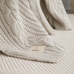 This throw combines a decorative cable weave with a smooth pearl stitch. The thick yarn with added wool accentuates the decorative weaves, making the throw very cozy and a true addition to a living room sofa or bedroom bed. The beautiful, light, cream color complements many natural interiors. The cream throw can be paired with one of three decorative pillowcases from the Wool Weave collection. in the same color. This beautiful, warm, and decorative woolen blanket is perfect for cooler evenings! Give yourself a cozy gift and have it on hand whenever you need a warm cuddle.