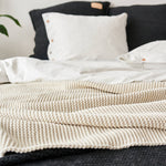 Warm, soft and pleasant beige blanket, like your favorite sweater. The addition of natural wool makes it suitable for cooler evenings. The blanket is nice and cozy, pleasantly warms and wraps. It fits well both on the living room sofa and on the bed in the bedroom. Recommended for a good book, an interesting movie and delicious tea.