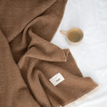 This woolen blanket is a light, warm brown, which we've dubbed "hazelnut." The color is very natural, beautifully pairing with white, beige, wood, and dark accessories. This walnut-colored woolen throw is a great option for true lovers of warm wool . The benefits of woolen products certainly don't need to be overstated, but it's worth emphasizing its natural and warm character, especially appreciated during the colder months. So if you love natural wool throws, this one is for you! 100% wool and a beautiful herringbone weave make it a pure classic, appreciated by connoisseurs, and one that won't go out of style for long. However, this throw will surprise everyone with its warm character.