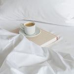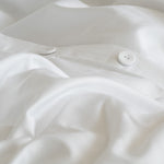 Bedding made of luxurious cotton satin in a snow-white color. Its natural composition means that the skin breathes, does not sweat, and the bedding is pleasant to the touch. The duvet cover is fastened with buttons covered with fabric in the color of the bedding. The buttons are hidden in the inner strip. The pillowcase has a flap closure on the side. Natural cotton satin is characterized by an extremely dense fabric weave, which makes the bedding exceptionally durable, smooth and pleasant to the touch. Cotton satin has a slight shine, and additionally creases nicely and does not require ironing. The pleasant and luxurious material will add class to your bedroom and will be conducive to good sleep, and the smooth and single-color white bedding will be a great background for styling your bed.