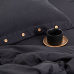 Bedding made of exceptionally soft and delicate knitwear in an anthracite melange shade. Its natural composition makes the skin breathe and the bedding is as pleasant to the touch as your beloved t-shirt. The pillowcase and duvet cover are fastened with wooden buttons. The whole thing is not only fabulously pleasant, but also beautiful. You will love it from the first touch. Match your bedding size from the available versions.