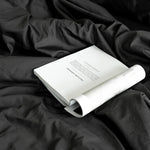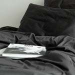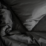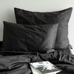 Bedding made of luxurious cotton satin in anthracite color. Its natural composition means that the skin breathes, does not sweat, and the bedding is pleasant to the touch. The duvet cover is fastened with buttons covered with fabric in the color of the bedding. The buttons are hidden in the inner strip. The pillowcases have a flap closure on the side. Natural cotton satin is characterized by an extremely dense fabric weave, which makes the bedding exceptionally durable, smooth and pleasant to the touch. Cotton satin has a slight shine, and additionally creases nicely and does not require ironing. The pleasant and luxurious material will add class to your bedroom and will be conducive to a good night's sleep, and the smooth and single-colored dark bedding will be a great addition to the styling of your bed.