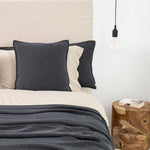 The pillowcase is made from recycled cotton yarn. It has an incredibly subtle weave, giving the entire textile collection a light and delicate feel. The beautiful graphite color complements bright shades inspired by nature. So, if you have white, wood, beige, and gray tones in your interior, you can be sure this pillow will complement them beautifully! The pillows look their best when paired with a bedspread, throw, and pillows in various sizes from the same collection.