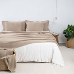 The Calm Moment pillowcase in light beige color, measuring 70x50 cm, is perfect for decorating the headboard. The pillowcase features a simple, chunky pattern and is made from a 100% recycled cotton blend. The pillow looks its best when paired with the Lazy Morning Bedspread, blanket or other pillows from the same collection in other sizes.