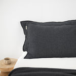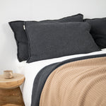The graphite Calm Moment pillowcase, measuring 70x50 cm, is perfect for decorating the headboard. The pillowcase features a simple, chunky pattern and is made from a 100% recycled cotton blend. The pillow looks its best when paired with the Lazy Morning Bedspread, blanket or other pillows from the same collection in other sizes.