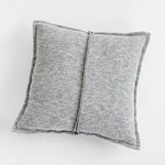 A light gray melange wool knit pillowcase. While the decorative, raw stitching and simple design of the pillowcase blend seamlessly with a modern interior, the high-quality wool knit gives the pillowcase a warm, homely feel.