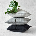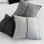 A pillowcase made of wool knit fabric in a melange gray color. While the decorative, raw stitching and simple design of the pillow blend seamlessly into a modern interior, the high-quality wool knit gives the pillowcase a warm, homely feel.