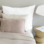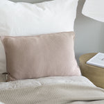 The pillowcase is made of recycled cotton yarn. It has an incredibly subtle weave, giving the entire textile collection a light and delicate look. The beautiful dusty rose color beautifully complements the delicate gray and beige tones. Check out the entire range of new colors from the Close to Nature collection!
