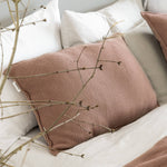 The pillowcase is made from recycled cotton yarn. It has an incredibly subtle weave, giving the entire textile collection a light and delicate feel. The beautiful terracotta color complements other nature-inspired shades. Check out the entire range of five new colors from the Close to Nature collection! Even if you live in the city, this collection will bring peace and harmony to your interior. The pillows look their most beautiful when paired with the bedspread, throw, and pillows from the same collection.