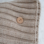 This pillowcase was created at the request of our customers who fell in love with the blanket and were waiting for a decorative pillow to match it. Well, here it is! This decorative pillowcase features a double-sided pattern that seamlessly complements your favorite blanket. One side features a rich, three-dimensional pattern, while the other features ribbed stitching embellished with wooden buttons. Thanks to its thick weave, the beige decorative pillowcase is beautifully suited for autumn and winter and pairs perfectly with the blanket from the same collection.