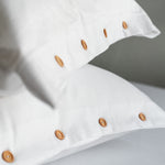 Pillowcase made of exceptionally soft and delicate knitwear in a snow-white color. Its natural composition makes the skin breathe, does not sweat, and the pillow is as pleasant to the touch as your favorite t-shirt. The pillowcase is fastened with wooden buttons. The pillowcase is not only fabulously pleasant, but also beautiful. You will love it from the first touch. The pillowcase matches the color of every version of bedding from our offer. Choose your favorite size.