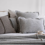 The simple form, raw cut, and double stitching of this pillowcase create a unique whole, which, combined with the wool knit, perfectly reflects our brand's slogan, "simply good." Charming simplicity and high-quality wool are what we love most. This pillowcase looks most beautiful when paired with other pillowcases from same collection. All models are available in five natural shades.