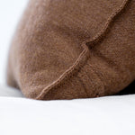 The decorative pillowcase has a light, warm brown color, which we called the hazelnut color. The color is very natural, beautifully combined with white, beige, wood and dark accessories. The pillowcase is sewn from thick wool fabric, finished on the edges with thick, decorative stitching made of wool yarn in the same shade. And if you only like decorative pillows in a set with a warm wool blanket or bedspread, you can create a truly winter set within one collection.
