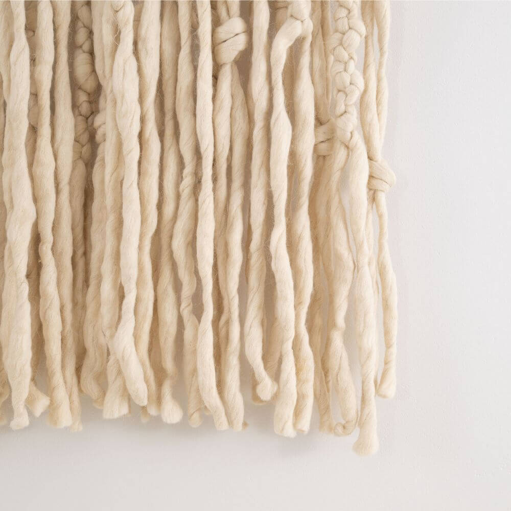 Made of natural wool, it captivates with its subtle, bright colors and artisanal finish. Hung on a wooden rod, it looks harmonious and adds a distinctive accent to the wall – a perfect replacement for paintings or other wall decorations, adding a cozy touch to the space. It's an original decoration for a living room, bedroom, or hallway, adding warmth and a personalized, natural feel. Each piece is handmade, making it unique and unrepeatable – like a small work of art created with a love of craftsmanship and simple, high-quality materials.