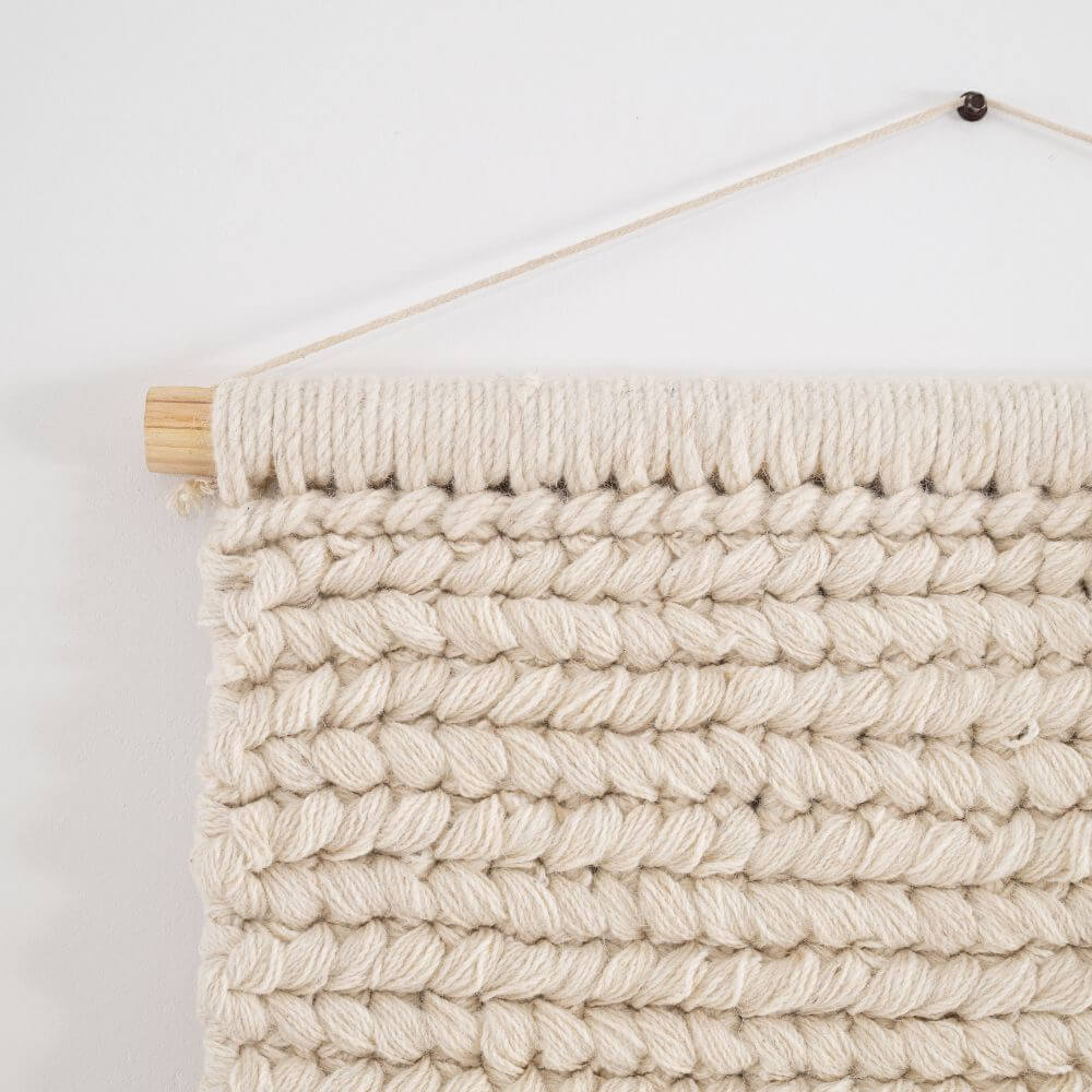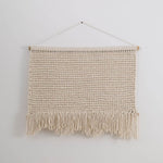 This natural-colored woolen wall kilim is a handmade decoration that subtly warms a space and gives the interior a unique character. Crafted with meticulous attention to detail, it captivates with its distinctive weave texture, natural colors, and simple, timeless form. Hung on a wooden rod, it looks light and harmonious, bringing an element of nature and craftsmanship to the room. The natural color doesn't overwhelm, but beautifully fills an empty wall. This exceptionally original interior decoration will perfectly complement natural, boho, Scandinavian, mountain-chic, or minimalist interiors. Moreover, its 120x90cm size makes it perfect for hanging above a bed in a bedroom. Each piece is unique, making it not just an accessory but a small work of art, emphasizing the home's individual style and love of authentic craftsmanship.