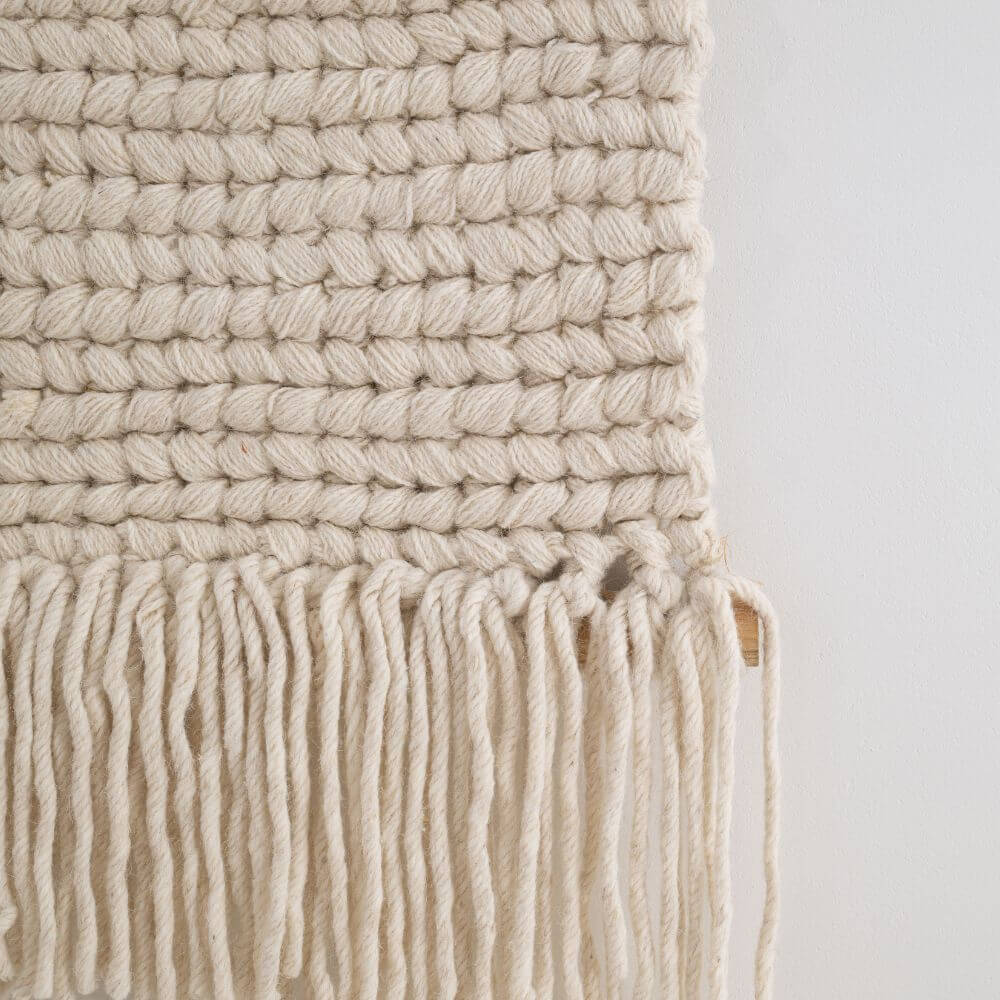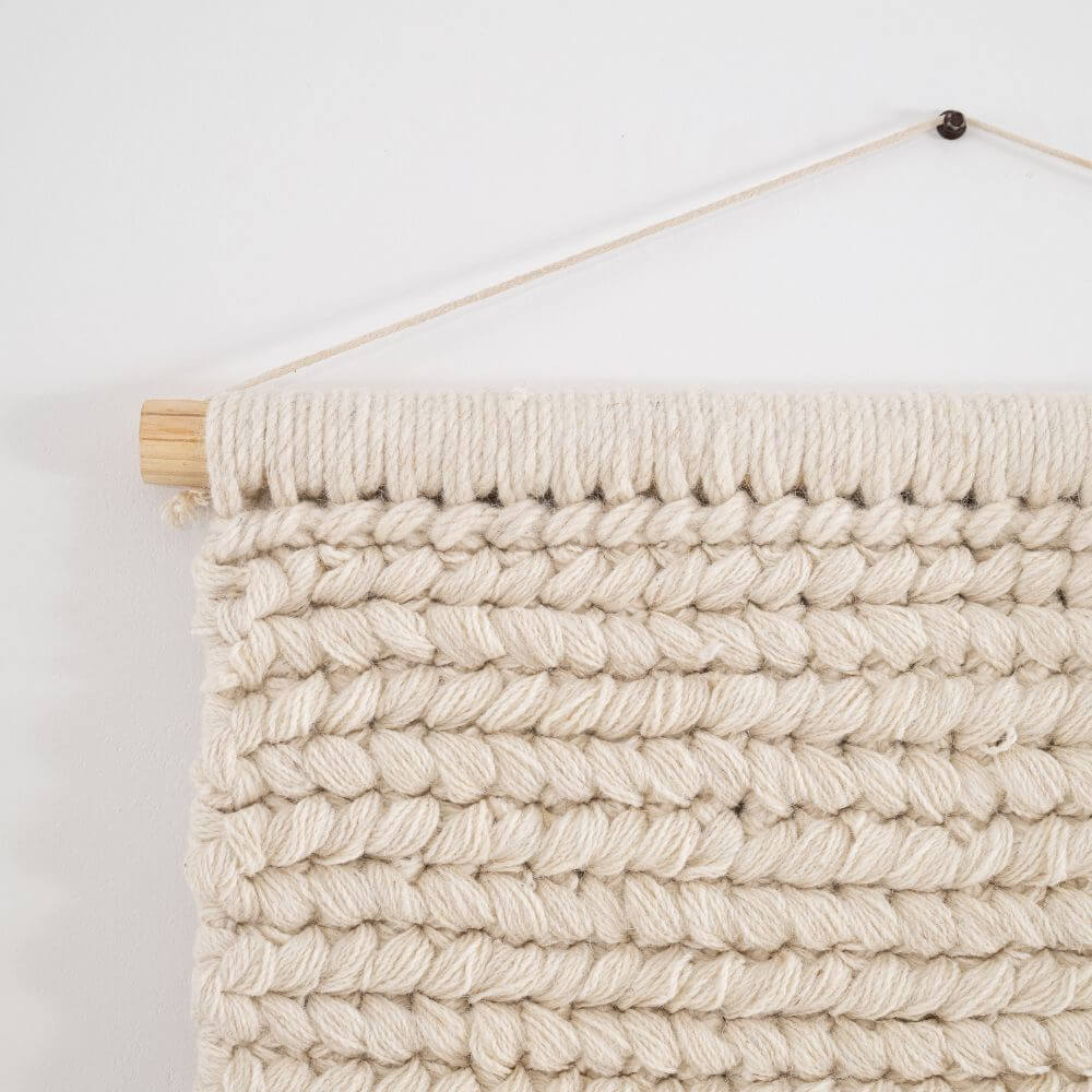This woolen wall kilim in a natural color is a handmade decoration that subtly warms a space and gives the interior a unique character. Crafted with attention to every detail, it delights with its distinctive weave texture, natural colors, and simple, timeless form. Hung on a wooden rod, it looks light and harmonious, introducing an element of nature and craftsmanship to the room. The natural color doesn't overwhelm, but beautifully fills an empty wall. This exceptionally original interior decoration will look perfect in natural settings. The smaller size can be hung in a hallway, or on a piece of empty wall in the living room, bedroom, or even the kitchen. Each piece is unique, making it not just an accessory but a small work of art, emphasizing the home's individual style and love of authentic craftsmanship.