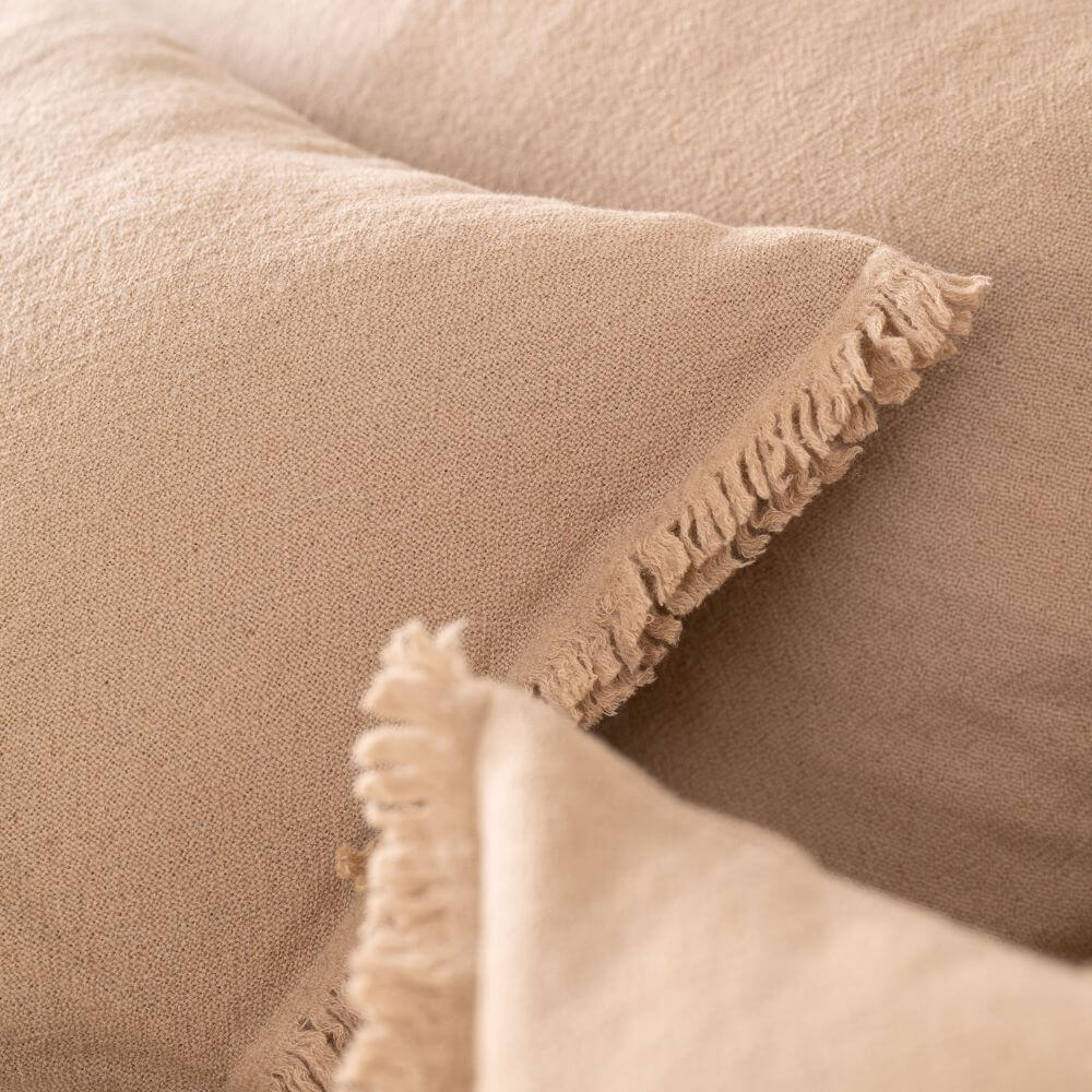 LIGHT BROWN WOOL PILLOWCASE 70X50 WITH DECORATIVE EDGE