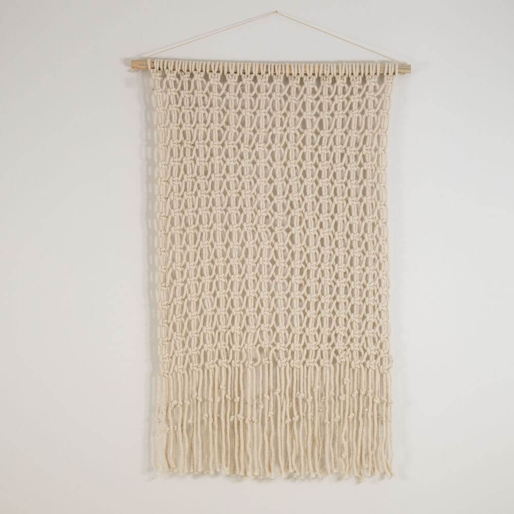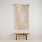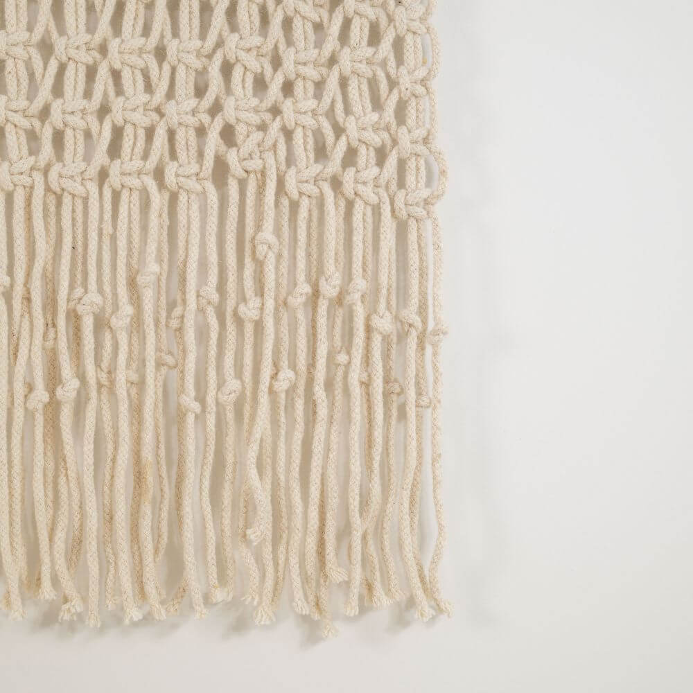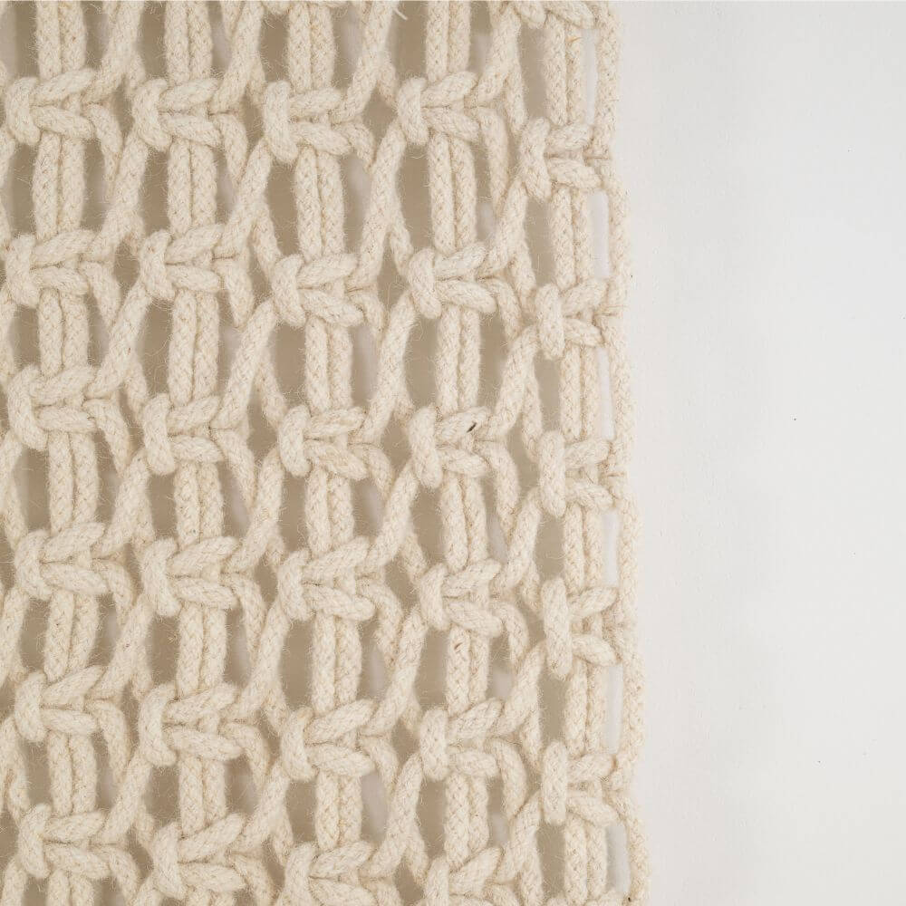 Ten ręcznie robiony ażurowy kilim na ścianę to wyjątkowa dekoracja, która łączy naturalne materiały z subtelnym, ażurowym wzorem. Naturalna, stonowana kolorystyka i wyrazisty splot to świetny duet do ozdoby pustej ściany, a duży wymiar kilimu gwarantuje spektakularny efekt. To dekoracja, która harmonijnie wpisuje się zarówno w jasne, minimalistyczne wnętrza, jak i aranżacje w stylu boho czy skandynawskim.